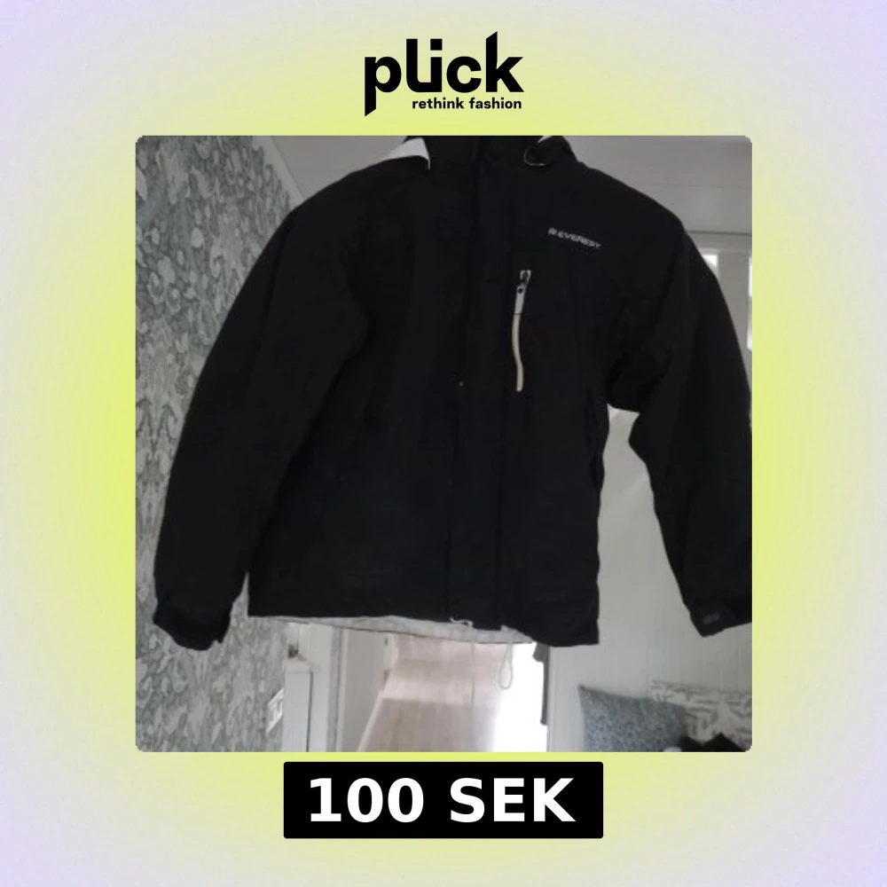 Säljer en svart vindjacka från Everest med dragkedja och hög krage. Jackan har långa ärmar och en praktisk bröstficka med dragkedja. Perfekt för blåsiga dagar och utomhusaktiviteter.