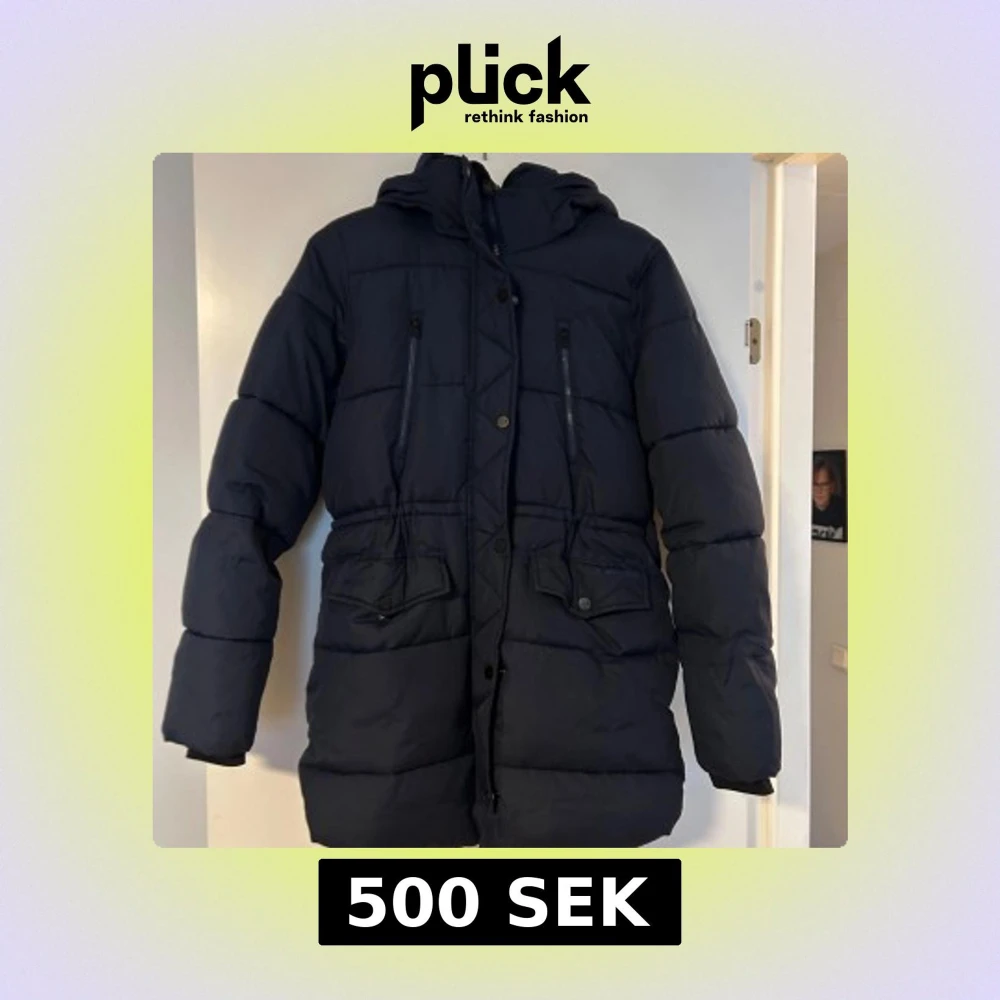 Säljer en mörkblå vinterjacka från Everest med huva, dragkedja och knappar framtill. Jackan har två stora fickor med knäppe och två bröstfickor med dragkedja. Perfekt för kalla dagar och har en schysst, lite längre passform. I storlek 164 alltså från barnavdelningen