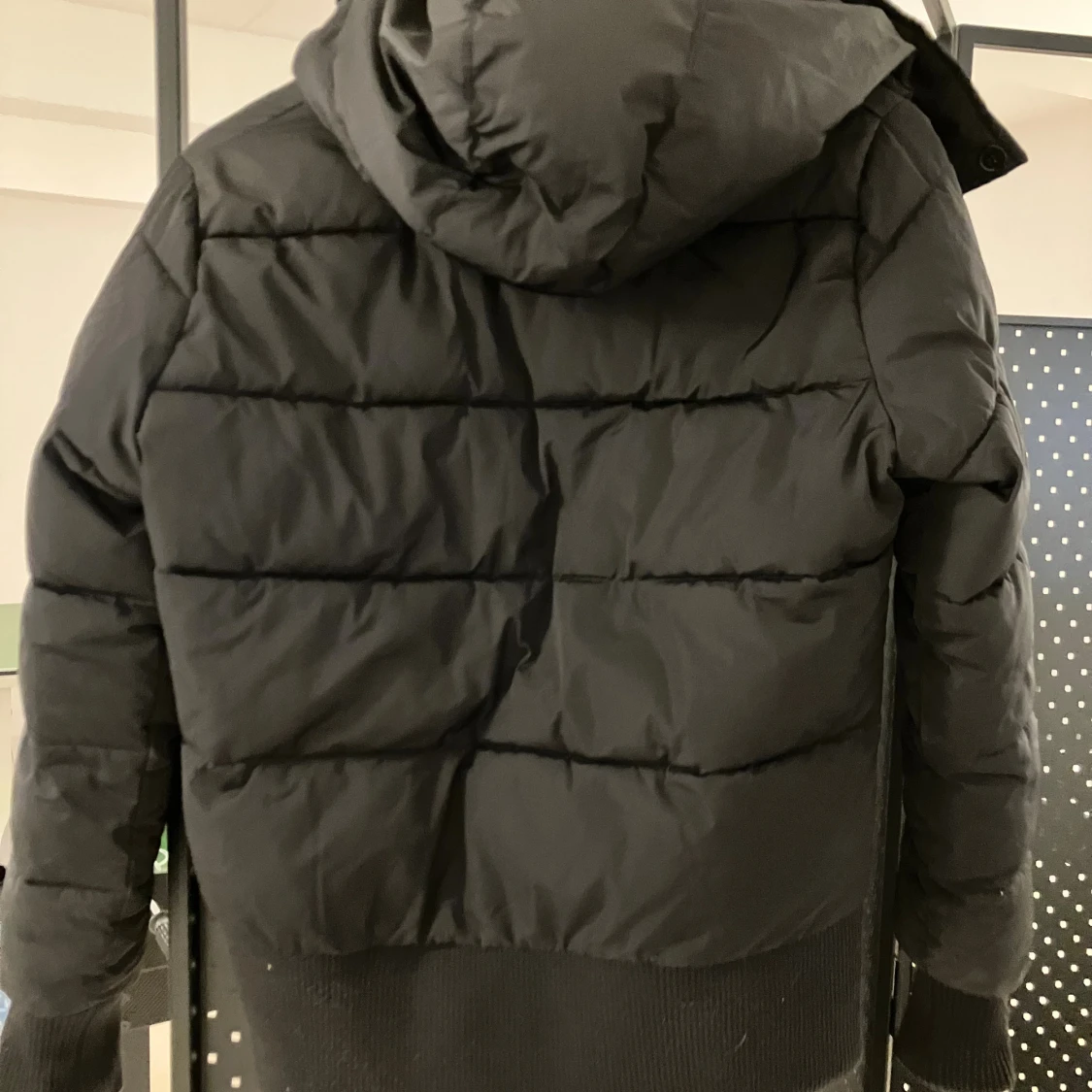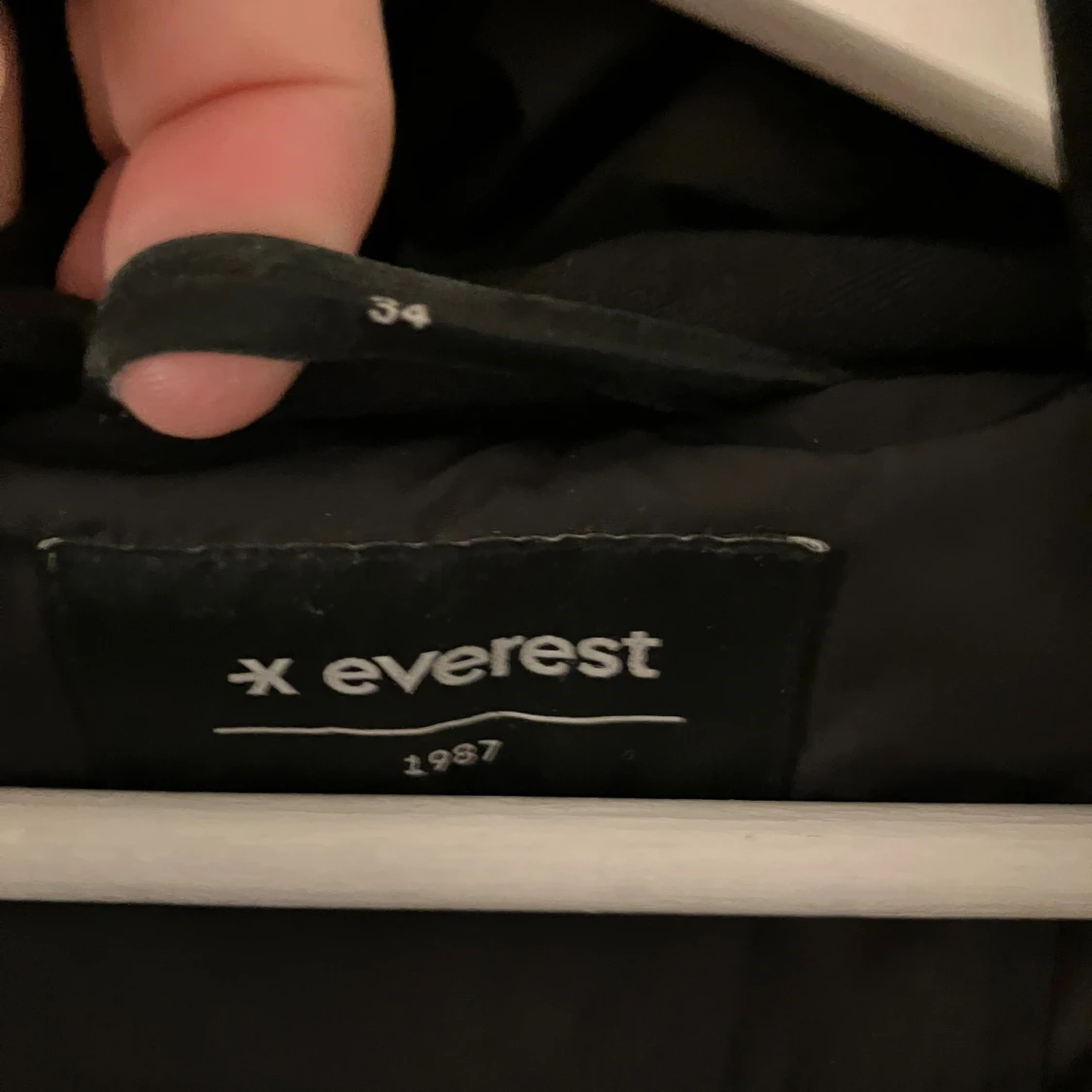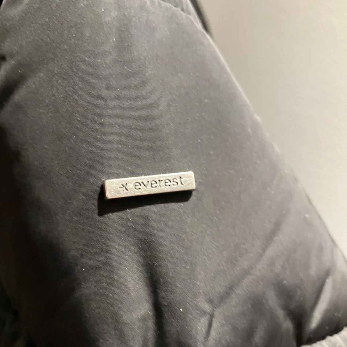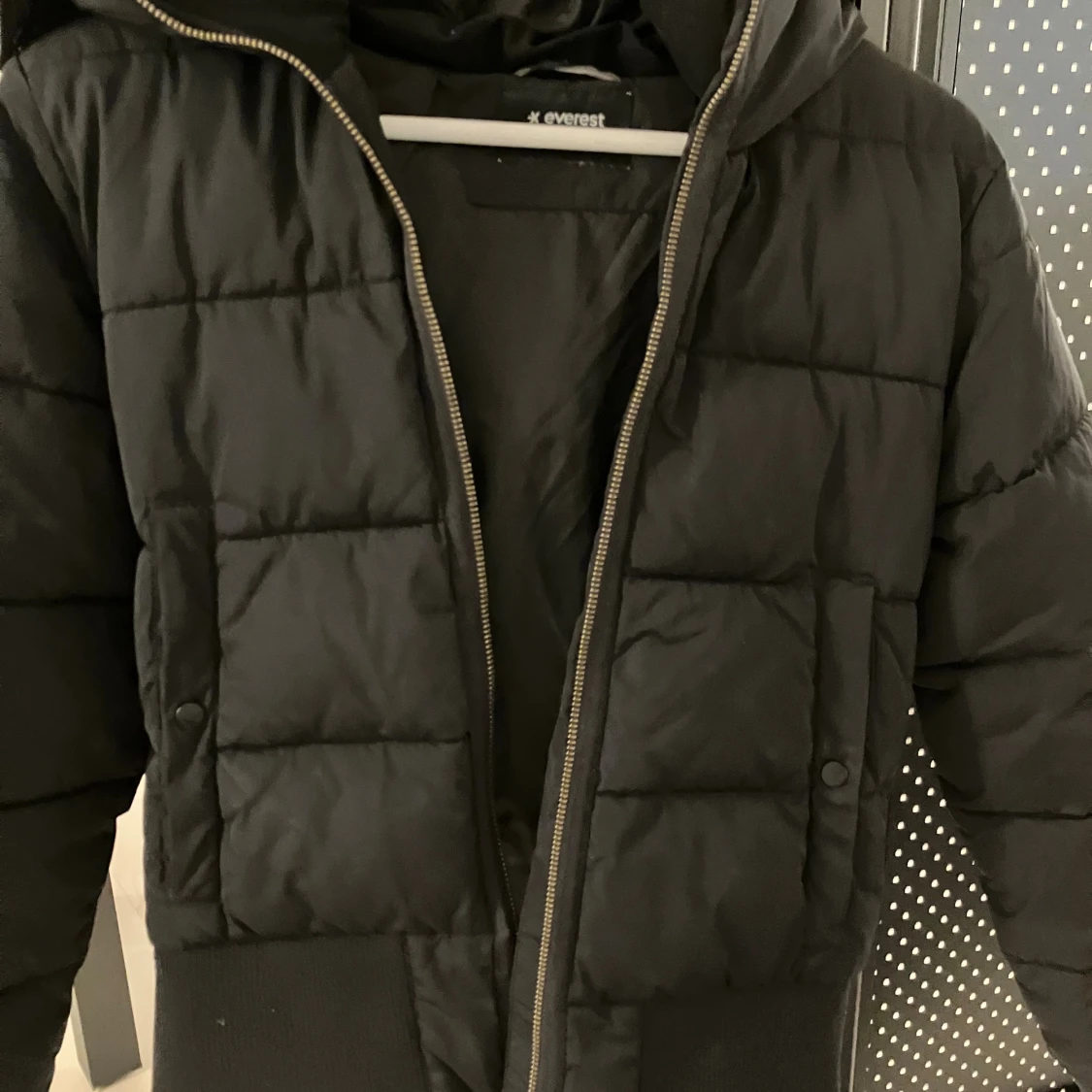 Svart puffer/dunjacka från Everest med huva, ribbade muddar och två fickor med knappstängning. Jackan har en grov dragkedja framtill och quiltad design. Perfekt för kalla dagar och har en clean, modern look.