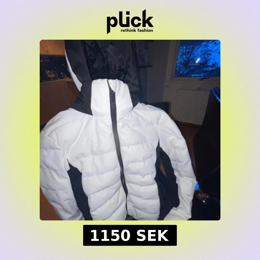 Säljer en snygg vit skidjacka med svarta detaljer. Jackan har en dragkedja framtill och en hög krage för extra värme. Perfekt för kalla dagar. Den har en pufferdesign som ger en modern look. Den har lite fläckar på axeln, magen och sen lite smink fläckar men de syns inte innanför jackan. Storlek 38, nypris ungefär 2000