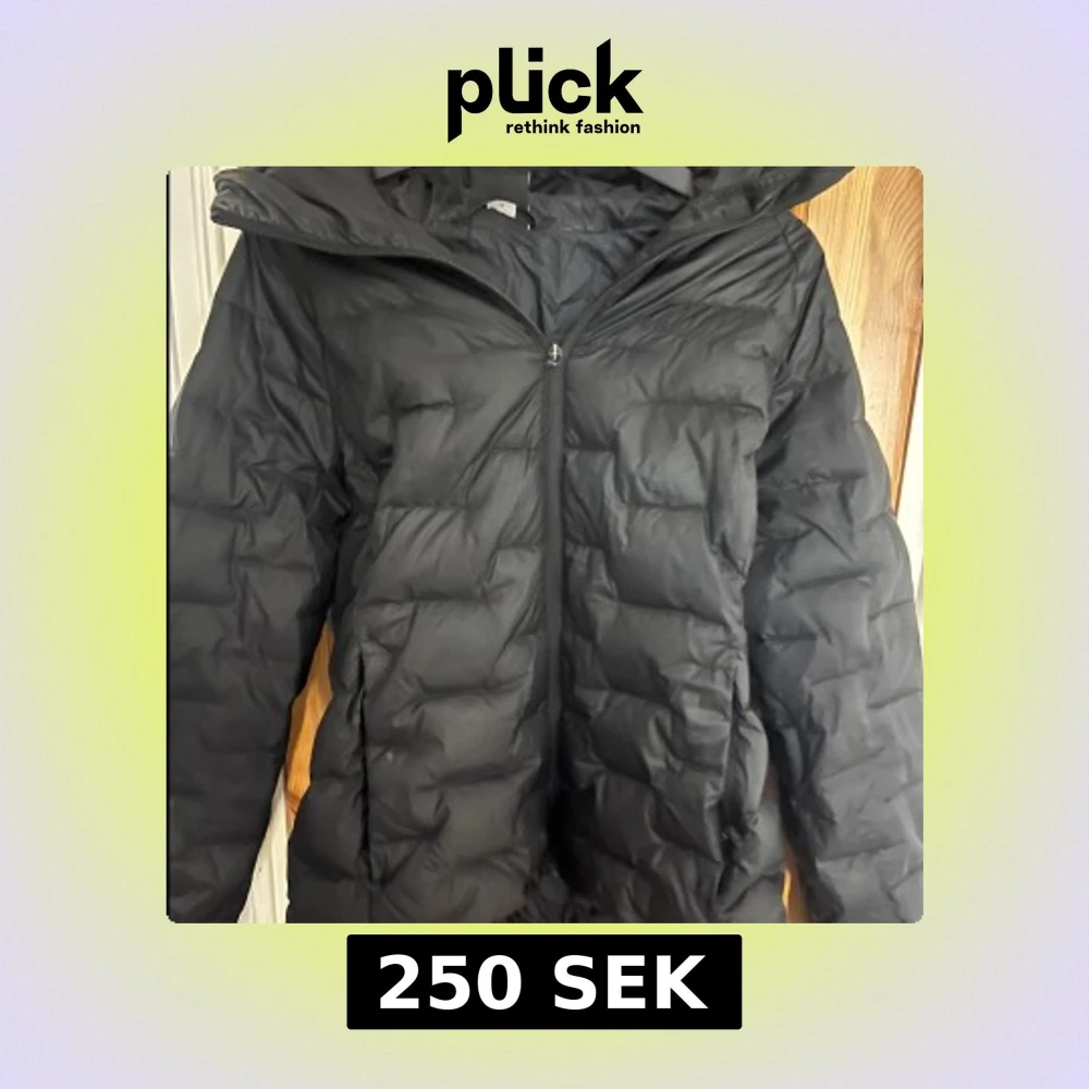 Säljer en svart pufferjacka med huva och dragkedja framtill. Jackan har quiltad design och är perfekt för kalla dagar. Den har en klassisk passform och är riktigt skön att bära. Säljer den för att den är för stor för mig.