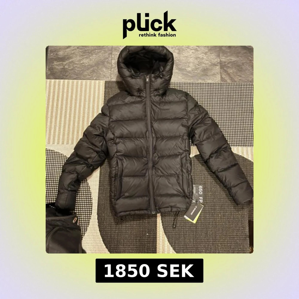 Säljer en svart dunjacka med huva och dragkedja. Jackan är quiltad och har en pufferdesign som ger en skön och varm känsla. Perfekt för kyligare dagar. 🖤storlek M, nypris 2500kr