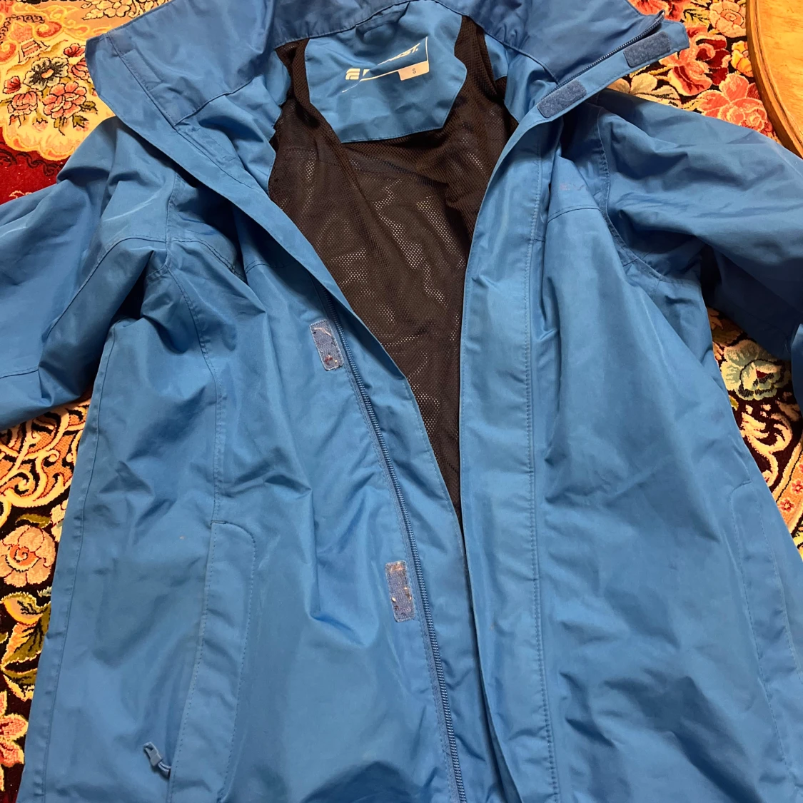 Säljer en blå vindjacka från Everest i storlek S. Jackan har en praktisk dragkedja och är perfekt för blåsiga dagar. Den är i bra skick och har ett meshfoder för extra komfort. Perfekt för vår och höst!