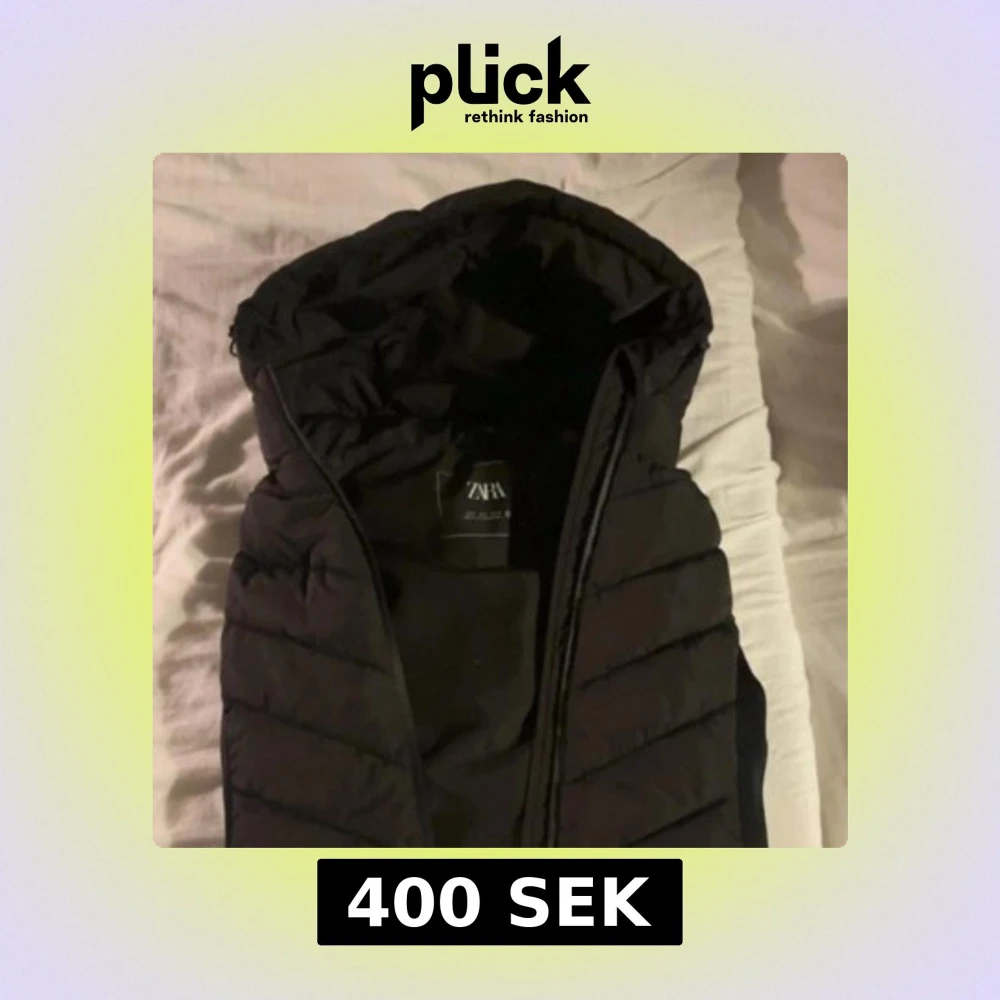 Svart quiltad dunväst från Zara med huva och dragkedja. Har använt, de inte riktigt min styl nå mer