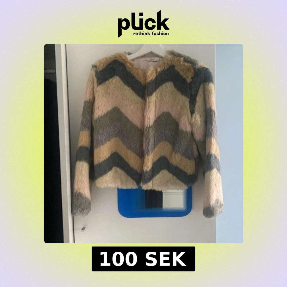 Säljer en fluffig pälsjacka från Name It i storlek 152. Jackan har coolt sicksackmönster i beige, grått, rosa och gult. Den är långärmad, har tryckknappar och är fodrad med ljusrosa tyg. Perfekt för dig som vill sticka ut med en unik look!