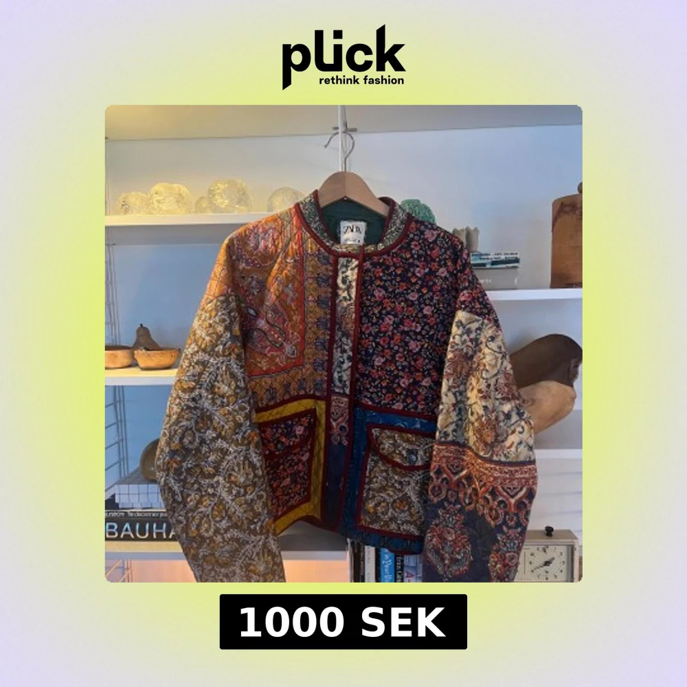 Unik och färgglad quiltad jacka från Zara med ett mixat blommigt mönster. Jackan har långa ärmar och flera fickor med knappar. Jackan är i storlek 40. Den saknar knappen längst ned. Den är väldigt eftertraktad därav priset.
