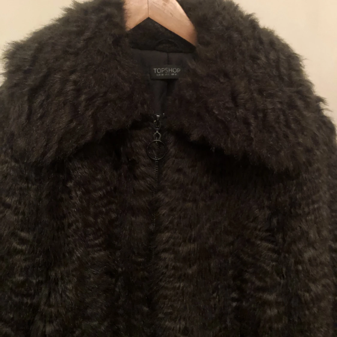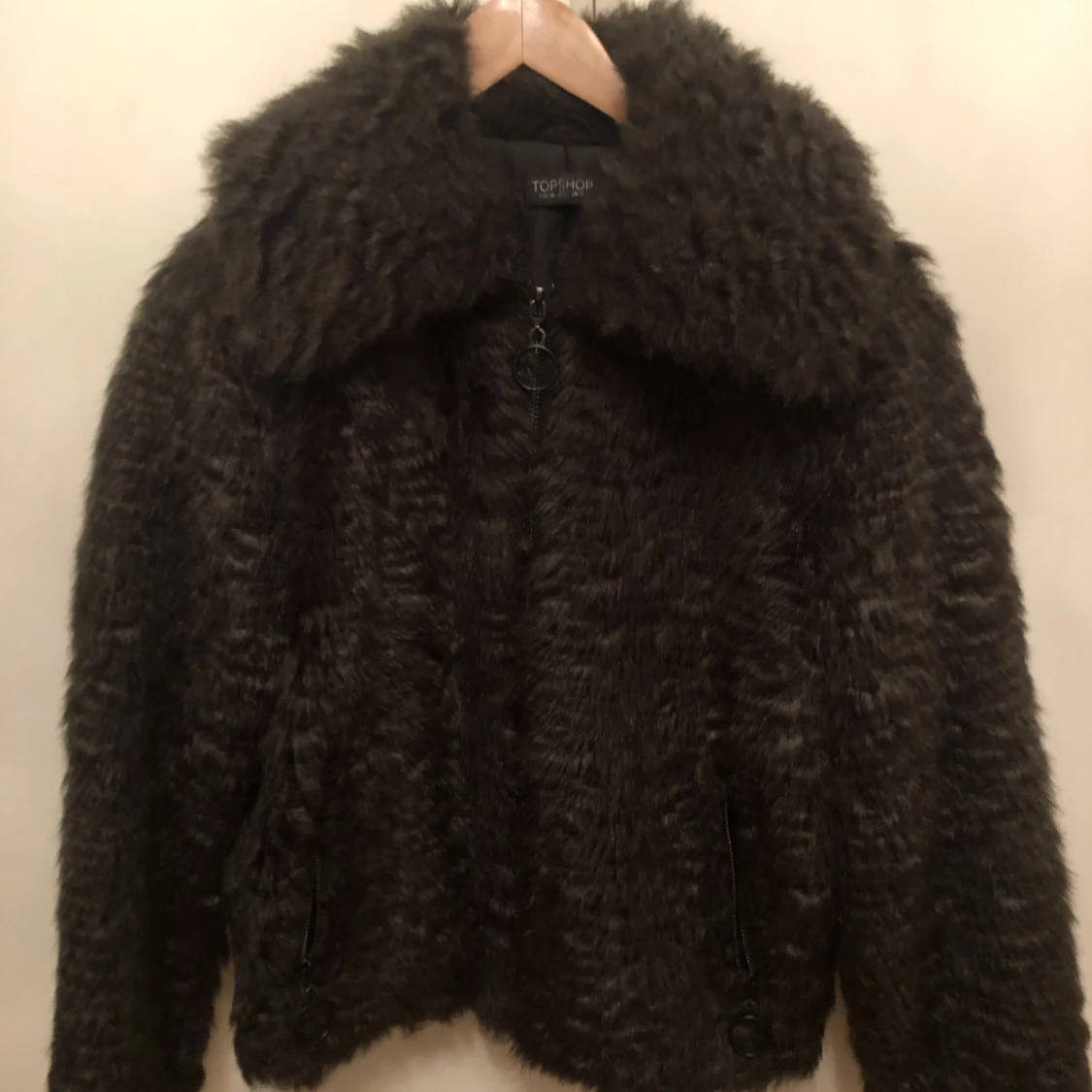 Mörk grön Faux fur jacka från Topshop i storlek 38.