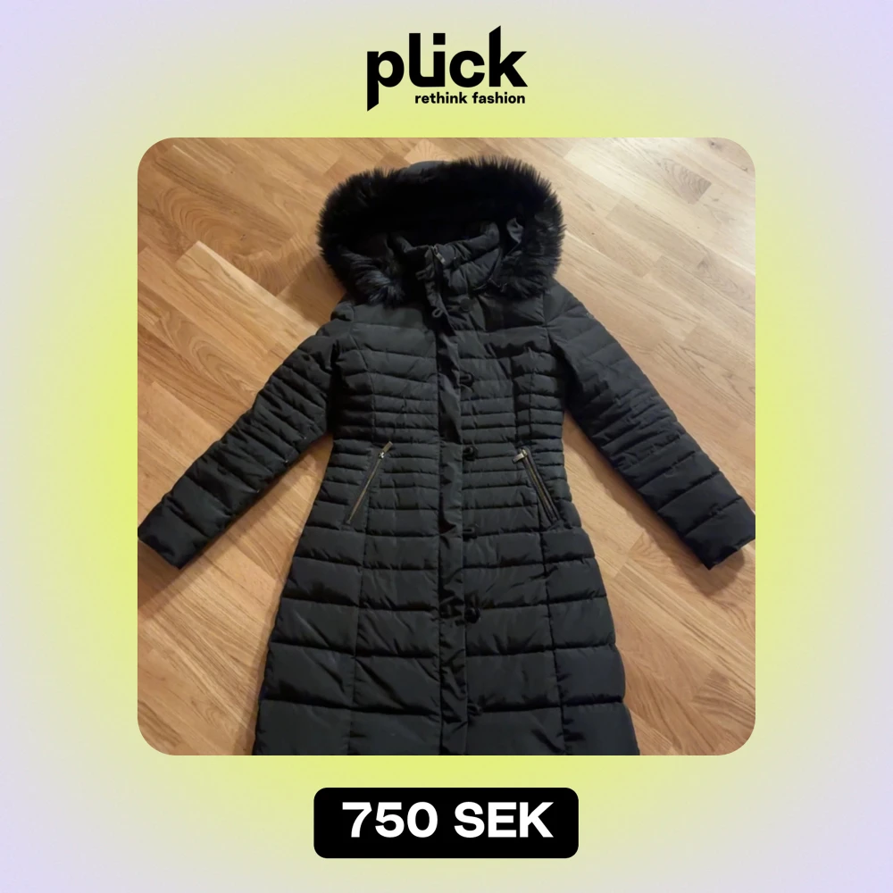 Snygg svart dunjacka från Armani Jeans med pälskantad huva i fuskpäls. Storlek 40 (italiensk) men motsvarar en 34. Precis kemtvättad. Knappen längst ner saknas men man använder bara dragkedjan. Dyr i inköp.