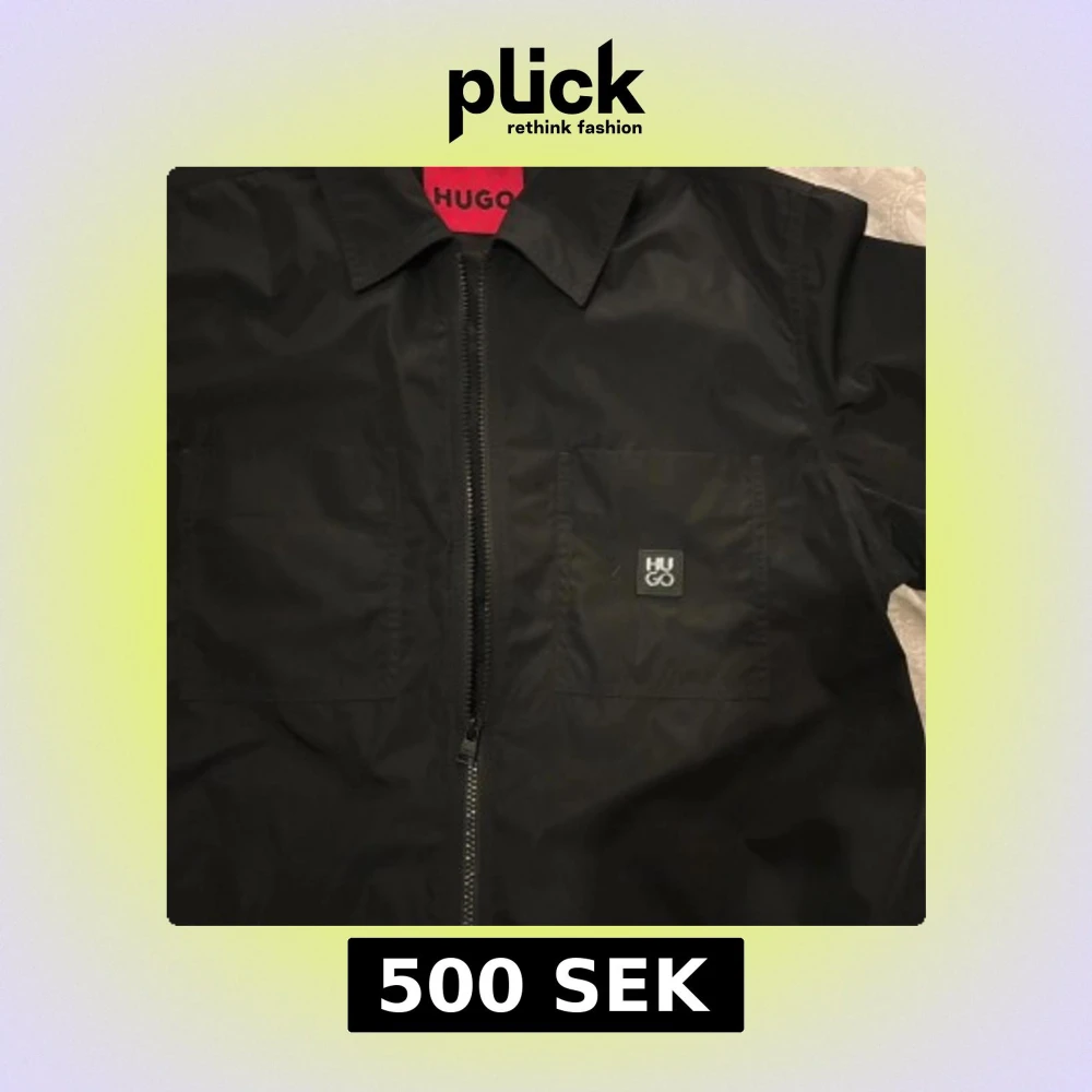 Stilren svart overshirt från Hugo med klassisk krage, två bröstfickor och diskret logga på vänster sida. Jackan har hel dragkedja framtill och är tillverkad i ett lätt, slätt material som ger en clean look. Perfekt för lager-på-lager och enkel att matcha.