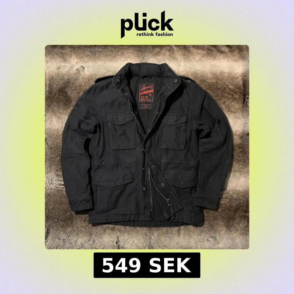 Säljer denna svarta M65 Feild Jacket från Superdry. Jackan är vintage från en av deras äldre kollektioner och har en stilren design. Skriv om ni undrar något!