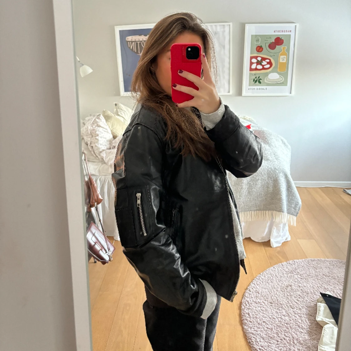 Sitter som en bomberjacka. Köpt vintage, lite blekt i nacken men annars i fint skick