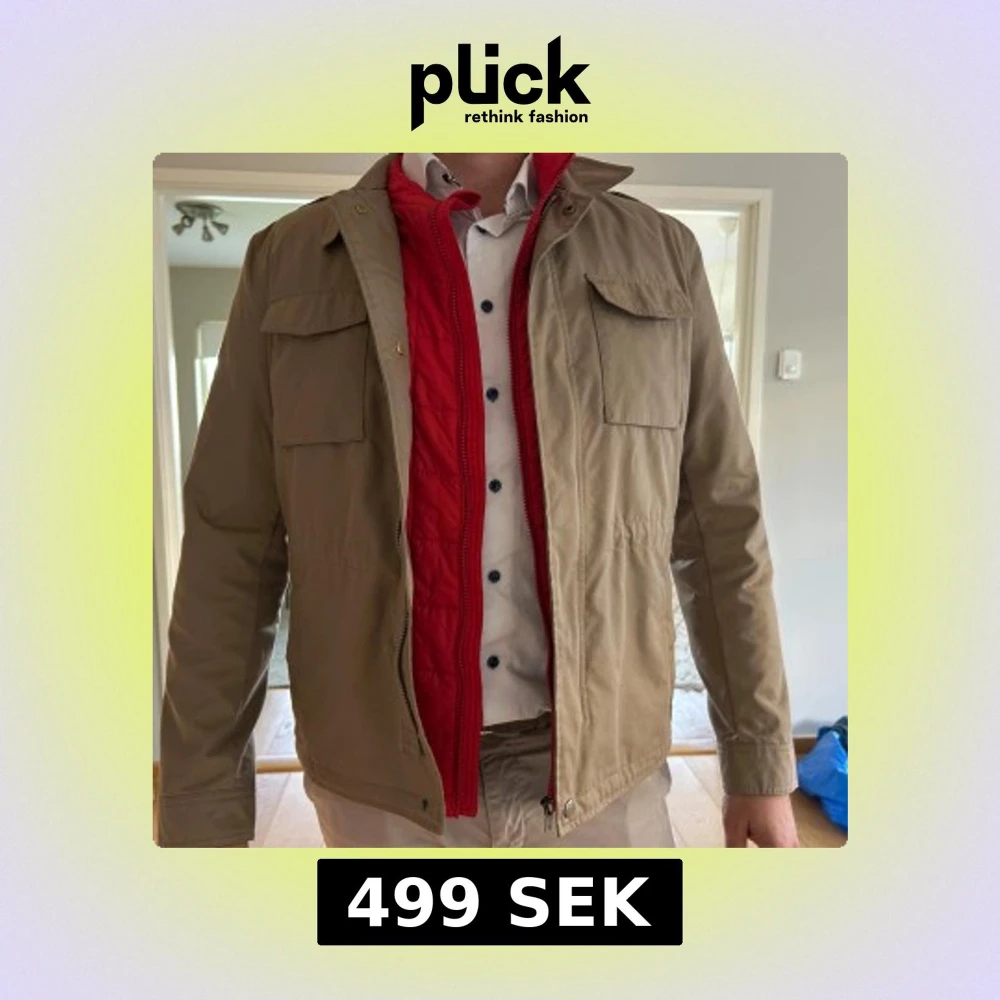 Västjacka från Massimo Dutti i beige med två stora bröstfickor och dragkedja. Insidan har en snygga detaljer och en broderad logga. Medföljer en röd quiltad väst med dragkedja som kan användas separat eller tillsammans med jackan. Kan köpas separat vid intresse! Storlek XL