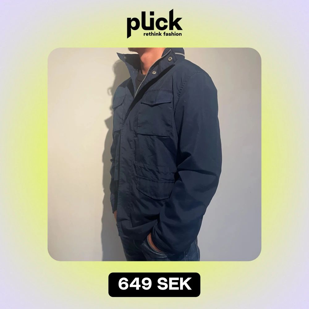 Säljer denna fieldjacka i en asgo marinblå färg. De e M men passar nästan L. Vid minsta lilla fråga är de ba att hojta! 8/10 i skick