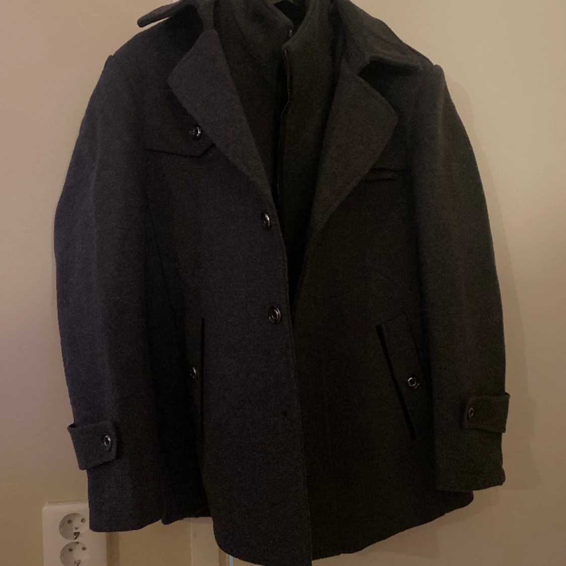 Säljer jackan då jag fick den av en kompis men den är för stor. Skicket är bra den har tappat en knapp men syns typ inte när man har på sig den. Den är i färgen grå men ser lite mörkar ut. Vet inte var den är köpt ifrån.
