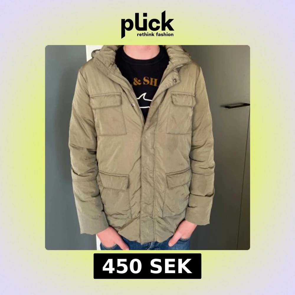 Säljer en olivergrön pufferjacka med fyra stora fickor framtill och huva. Jackan har dragkedja och tryckknappar. Perfekt nu när det börjar bli lite kallare. Modellen är 176. Kontakta mig för vidare frågor