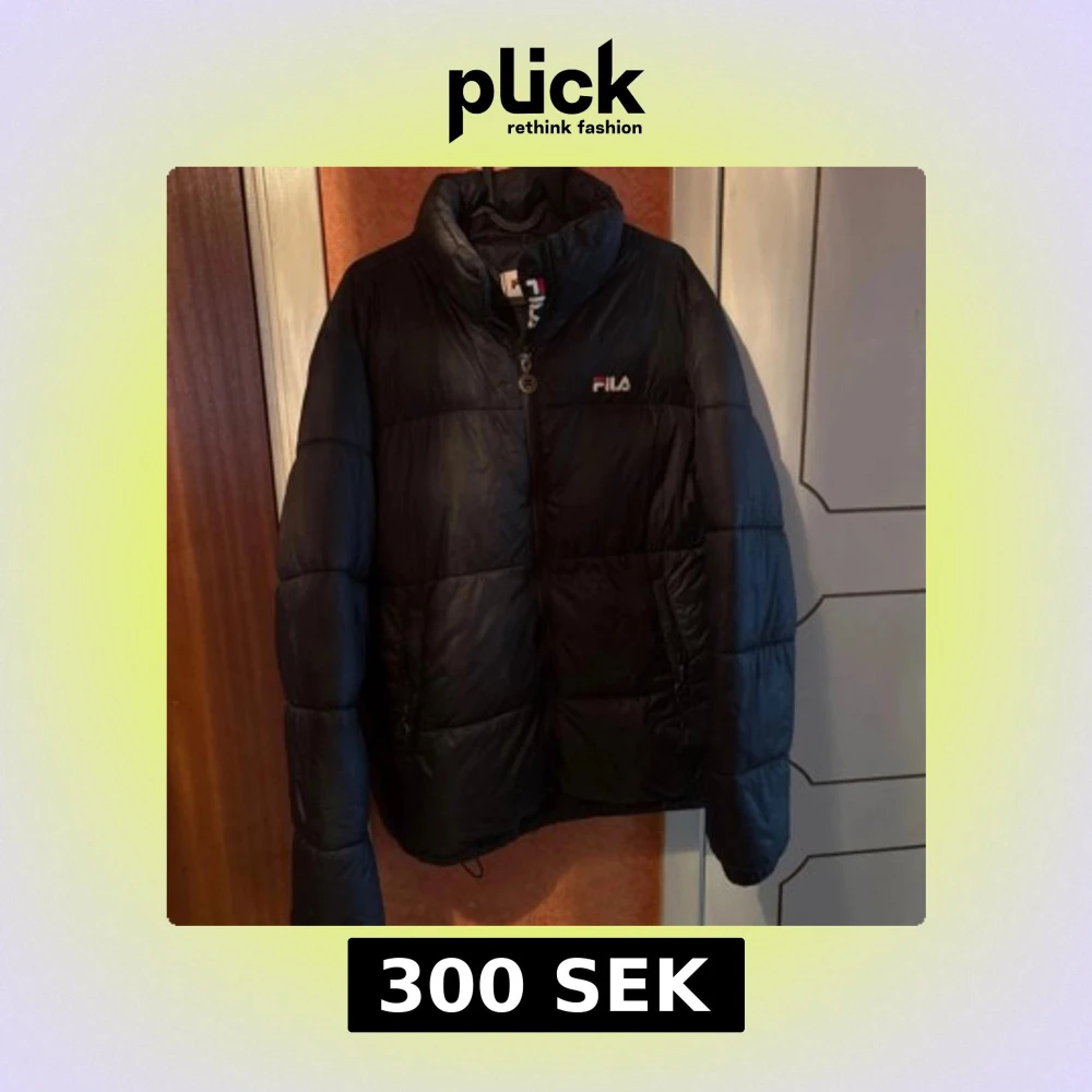 Svart pufferjacka från FILA med hög krage och diskret logga på bröstet. Jackan har dragkedja framtill och är quiltad för extra värme. Perfekt för kalla dagar och har en stilren look som funkar till det mesta.