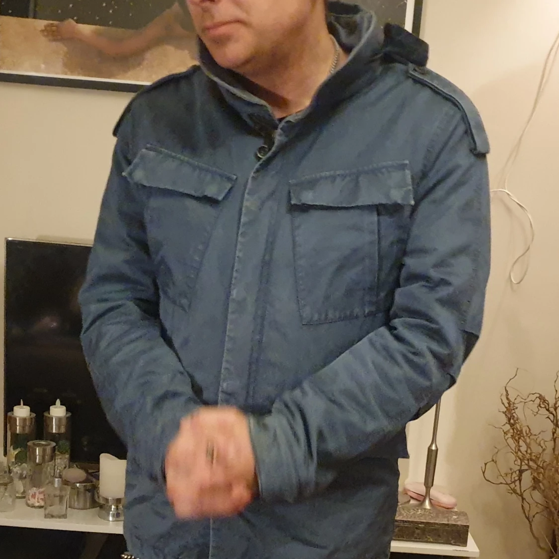 Färgen har nog fått ge med sig lite men i övrigt kanonskick. Osäker faktiskt på hur den var kring ffa knappar och så från början.