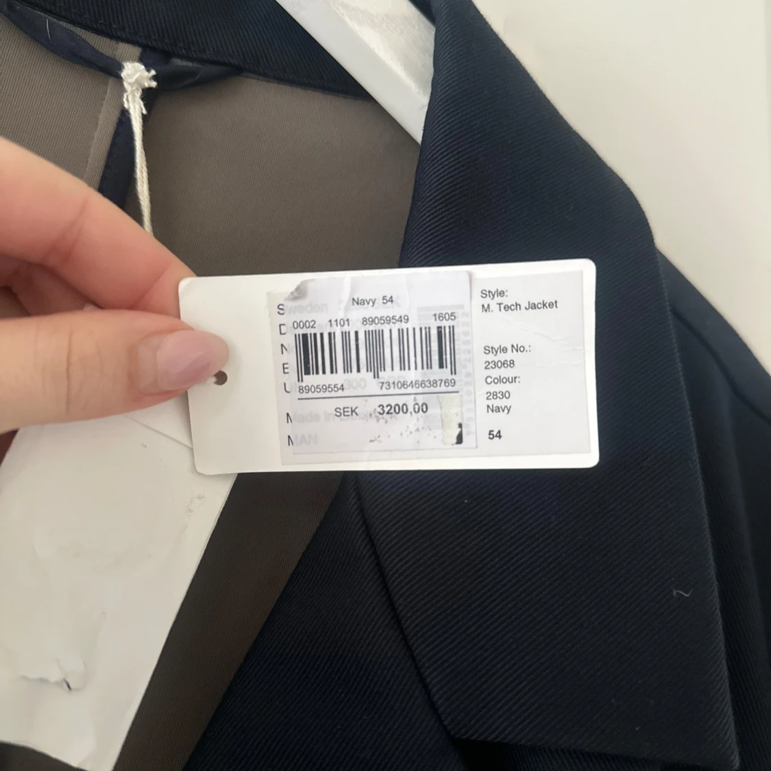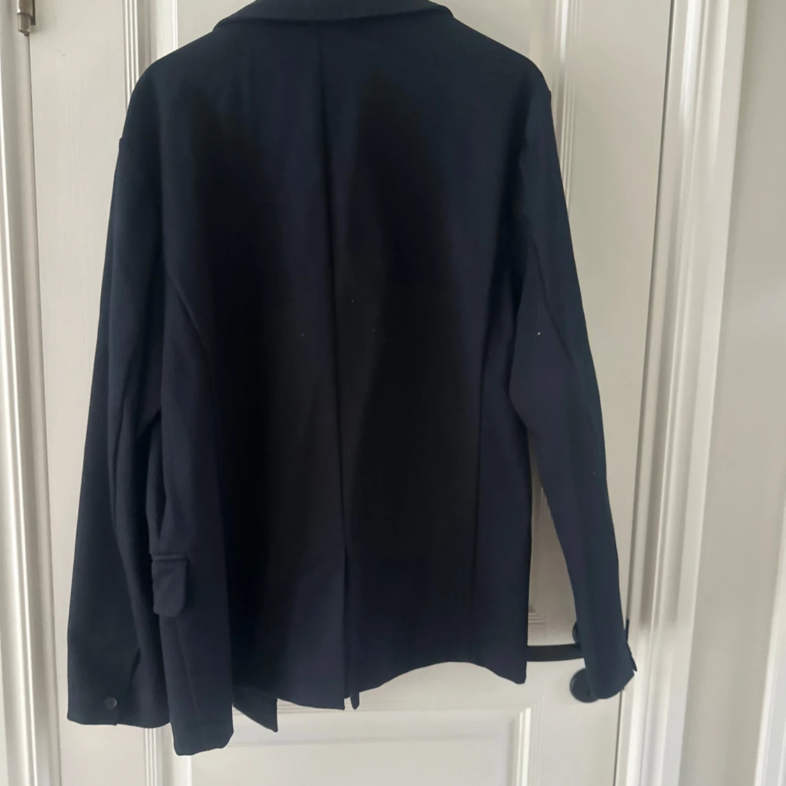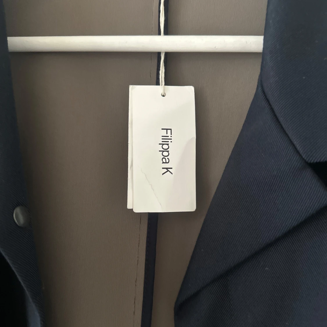 Säljer en stilren mörkblå jacka från Filippa K. Jackan har en klassisk design med långa ärmar och en elegant krage. Perfekt för en sofistikerad look.