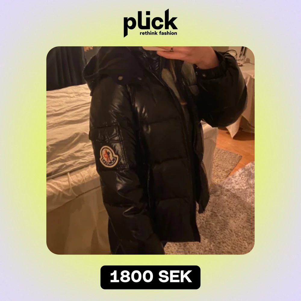 Svart moncler jacka i en gammal model därför den har det större märket. Ganska bra skick men finns små defekter därav priset! Hör av er vid intresse och lägg pris förslag jag accepterar de mesta🩷