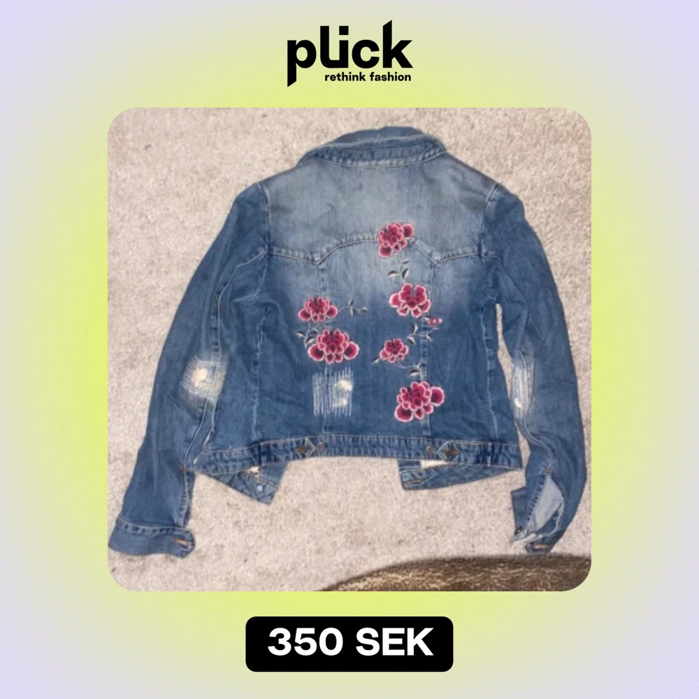 Fin odd Molly jeansjacka med blommor på ryggen, i fint skick. Strl 0 (XS/34)