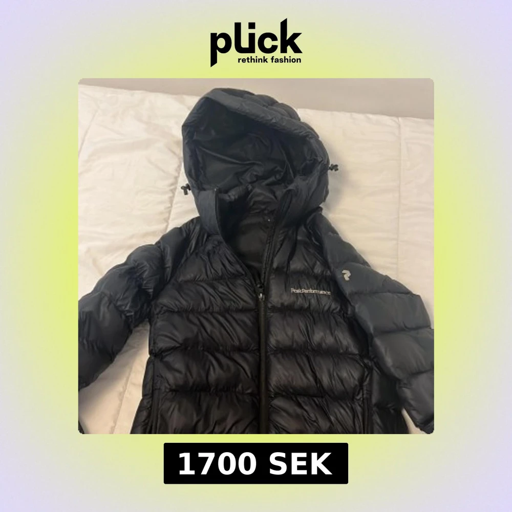 Säljer en svart dunjacka från Peak Performance i storlek 150. Jackan har huva med dragsko, quiltad design och dragkedja framtill. Perfekt för kalla dagar och riktigt snygg streetstil. Kommer ej till användning mer då den blivit liten