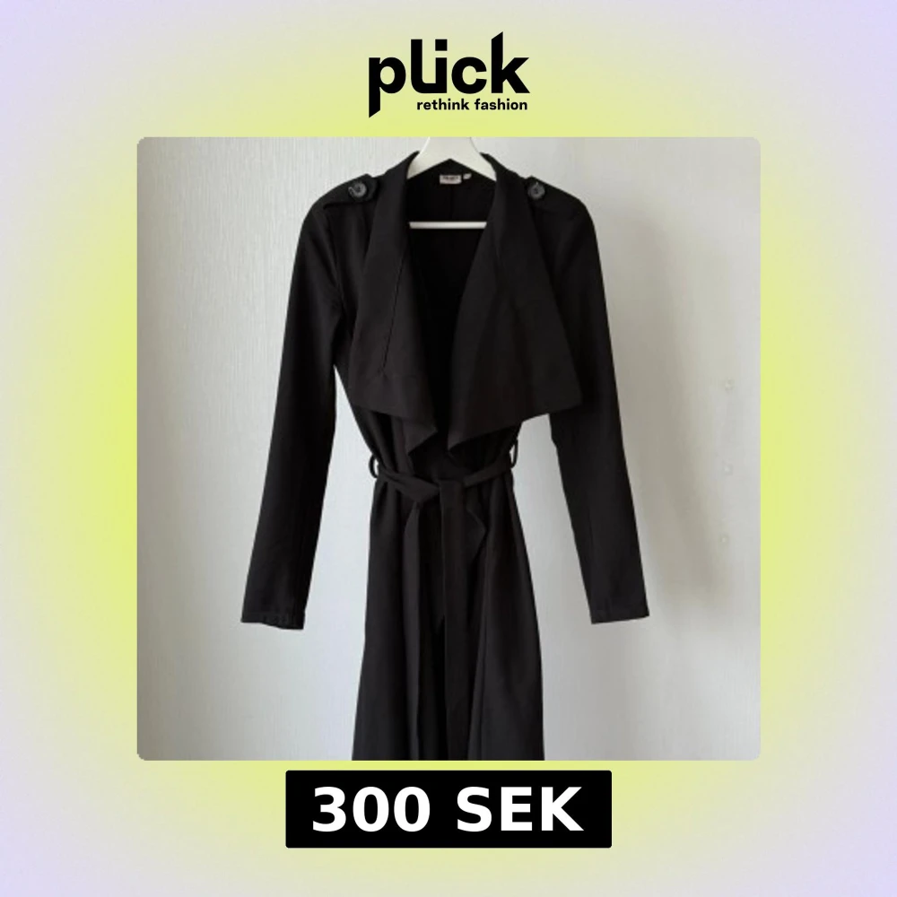 Svart trenchcoat från Object i 100% polyester. Jackan har långa ärmar, bred krage, axelklaffar med knappar och knytskärp i midjan. Snygg och stilren modell med klassiska detaljer och rak passform.