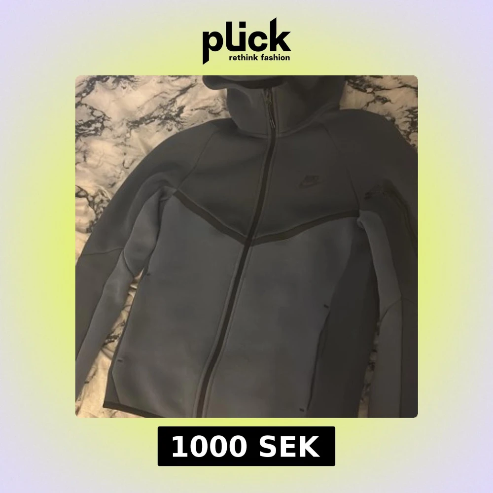 Nike Tech Fleece hoodie i mörkblått med svarta detaljer och dragkedja. Jackan har huva, lång ärm och en extra ficka med dragkedja på ärmen. Tillverkad i mjukt och lätt fleecematerial, perfekt för en sportig och clean look. Den är nästan helt ny tog på mig den en gång