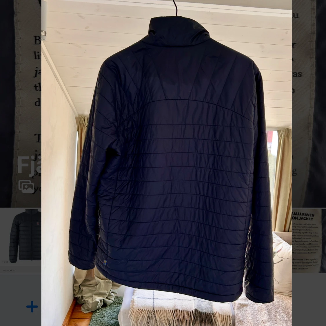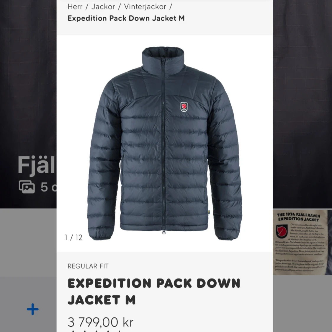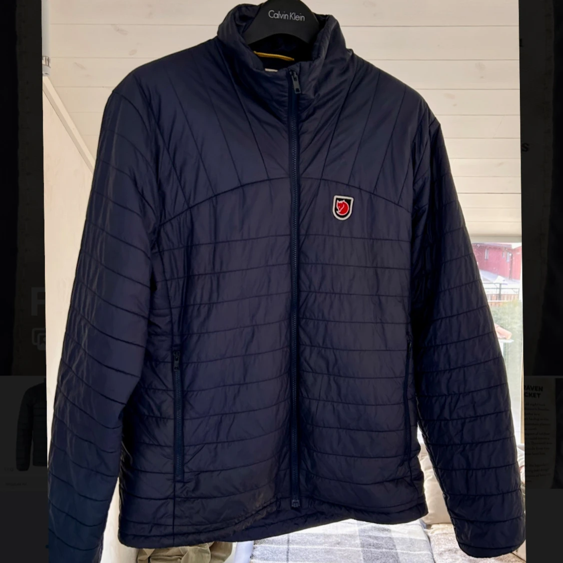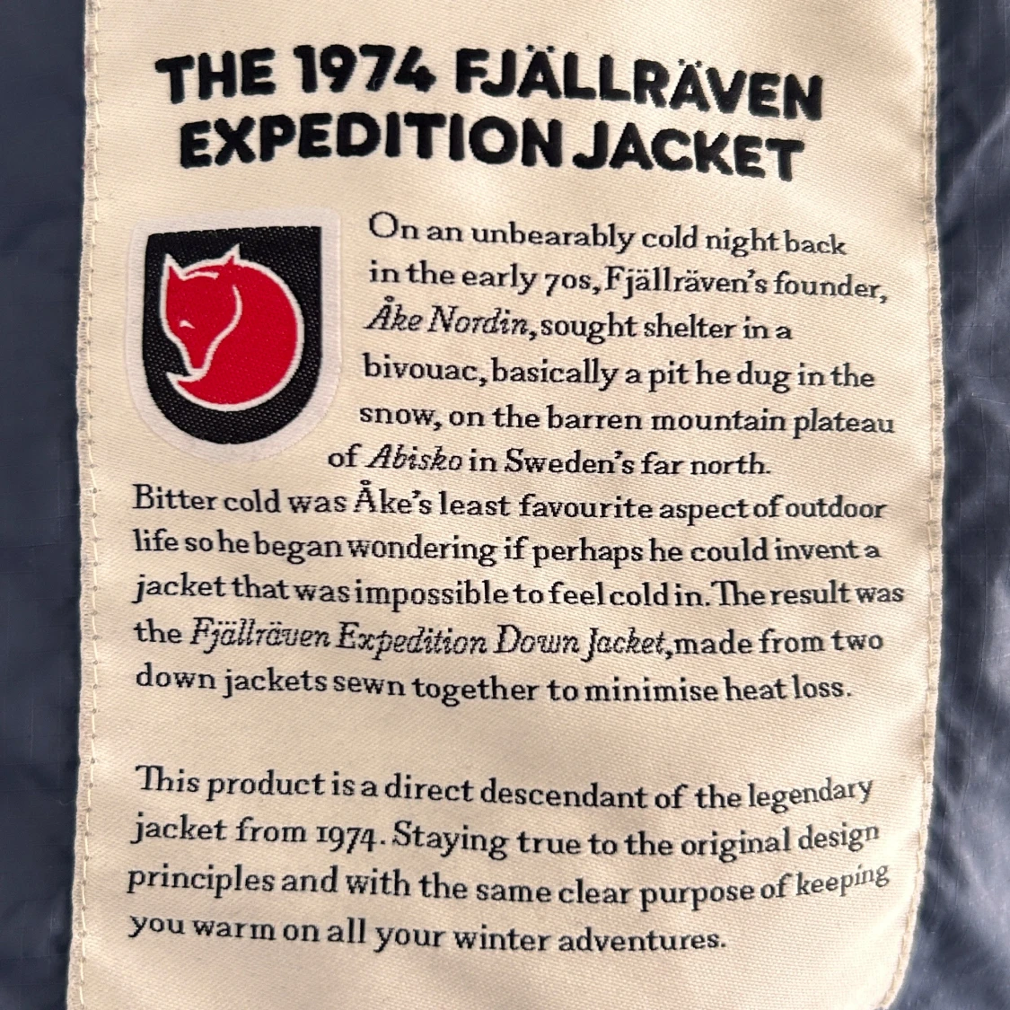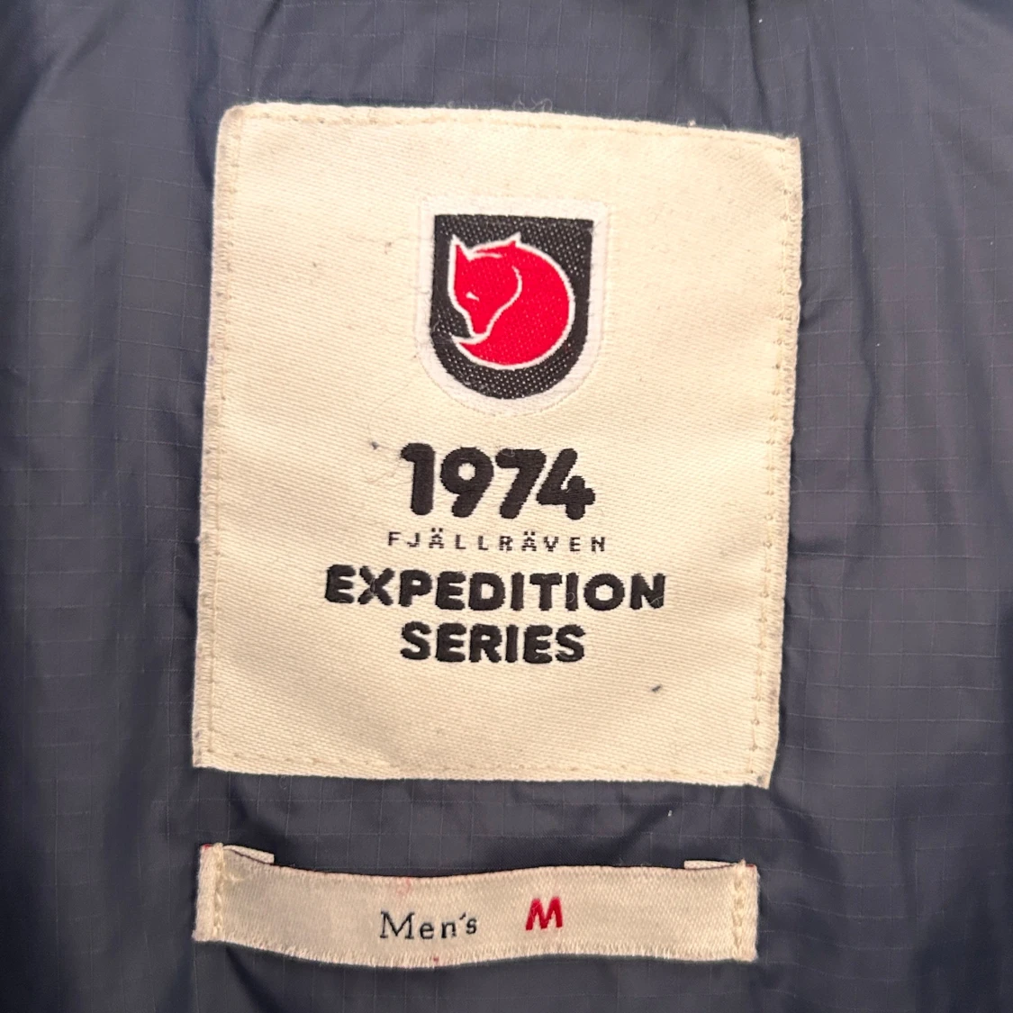 Säljer en blå dunjacka från Fjällräven Expedition Series.