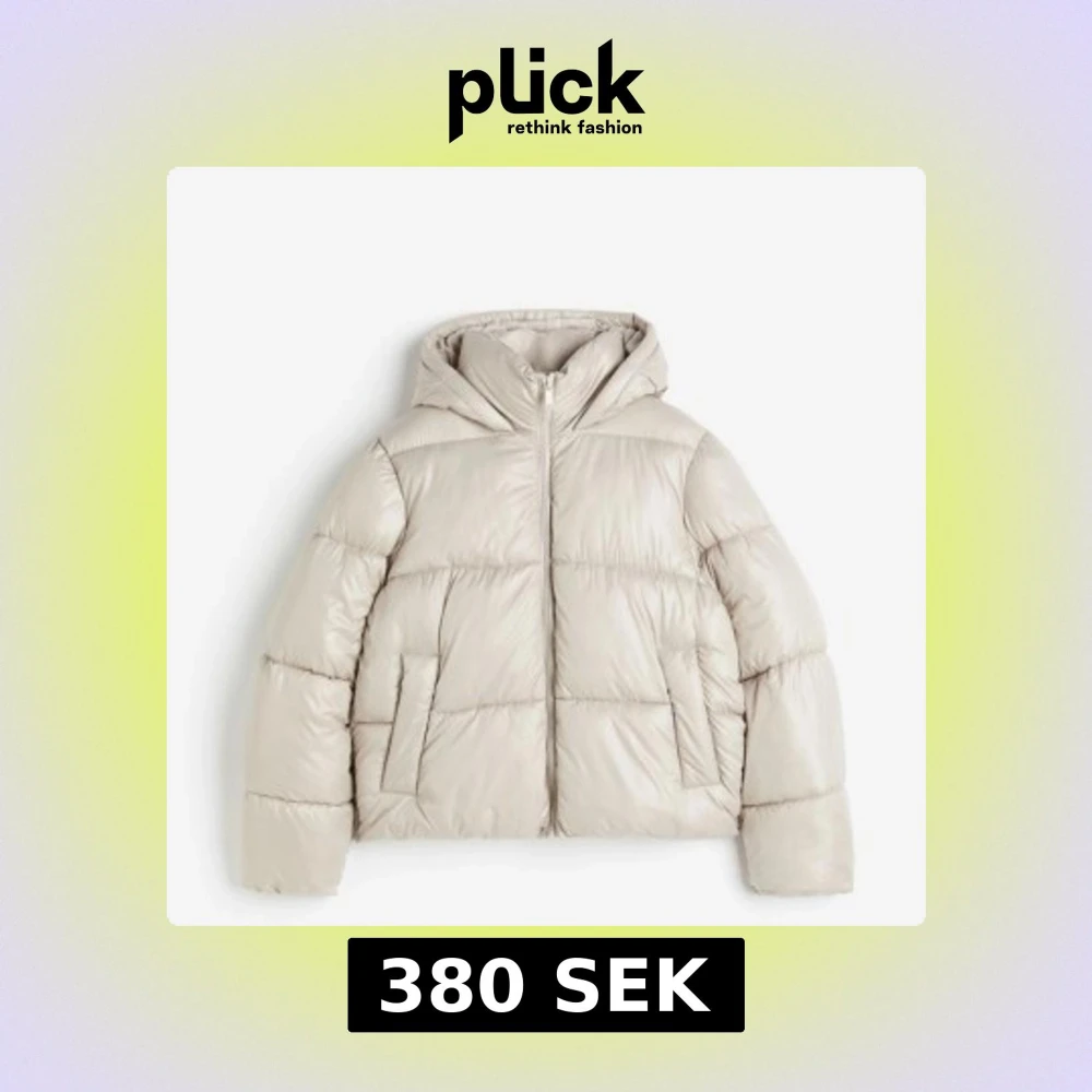 Beige pufferjacka med huva