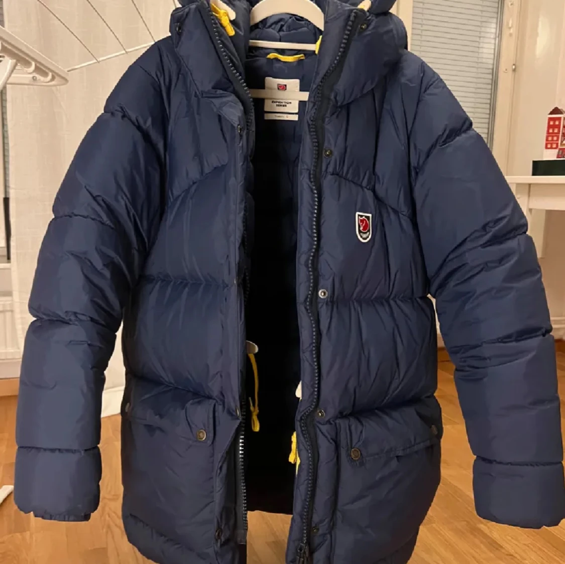 Säljer en mörkblå Fjällräven jacka i expedition serien i inprincip nyskick! Köpte jackan här på plick men har ångrat mig och vill ha en annan jacka till vintern🥰knappt använd och det finns inga defekter eller liknande. Rimligt pris går att diskutera💞storlek S men passar även xxs-m beroende på hur man vill att jackan sitter💞