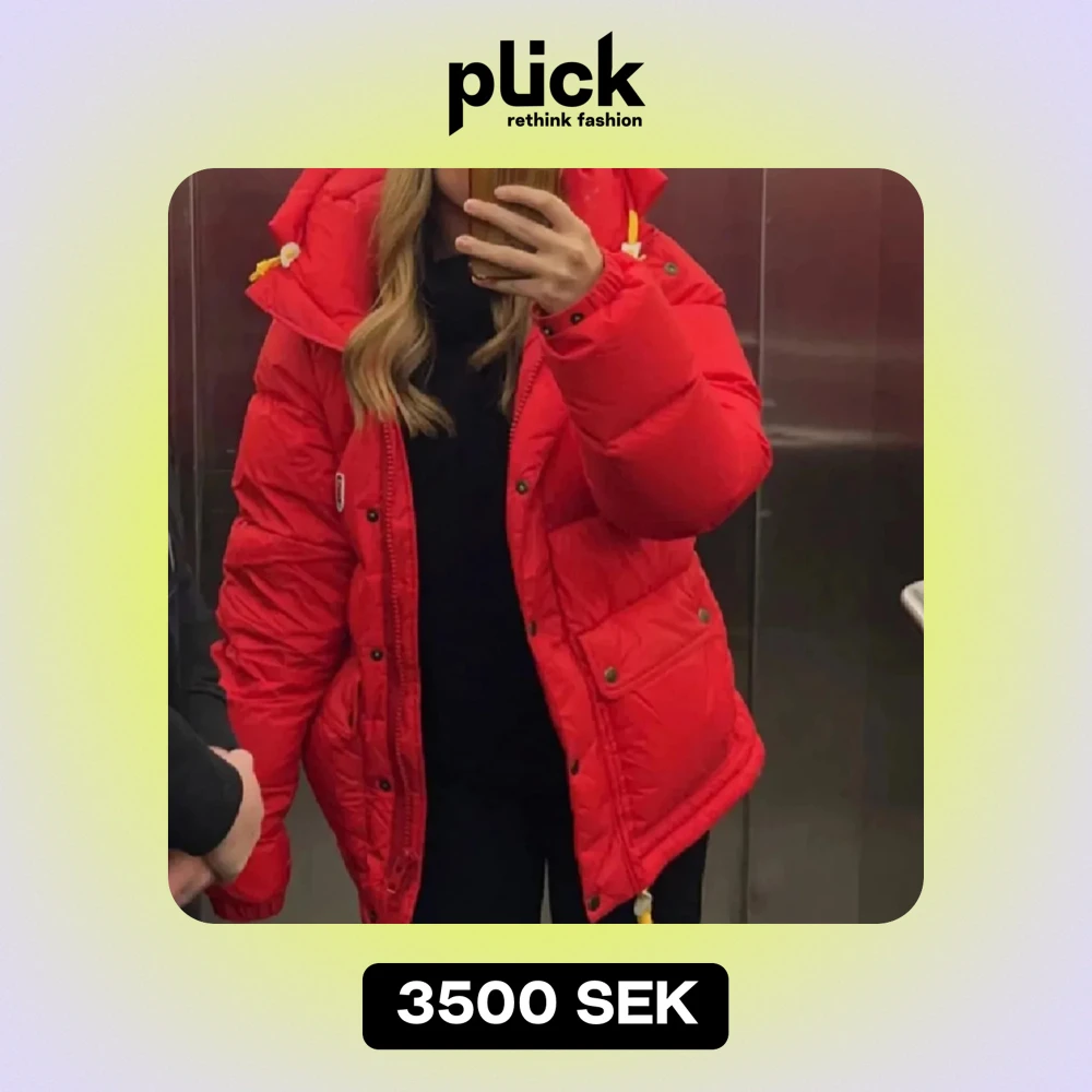 Supersnygg röd fjällräven jacka i storlek Xxs men passar bra på mig som vanligtvis har S, inga defekter och väldigt välskött🥰