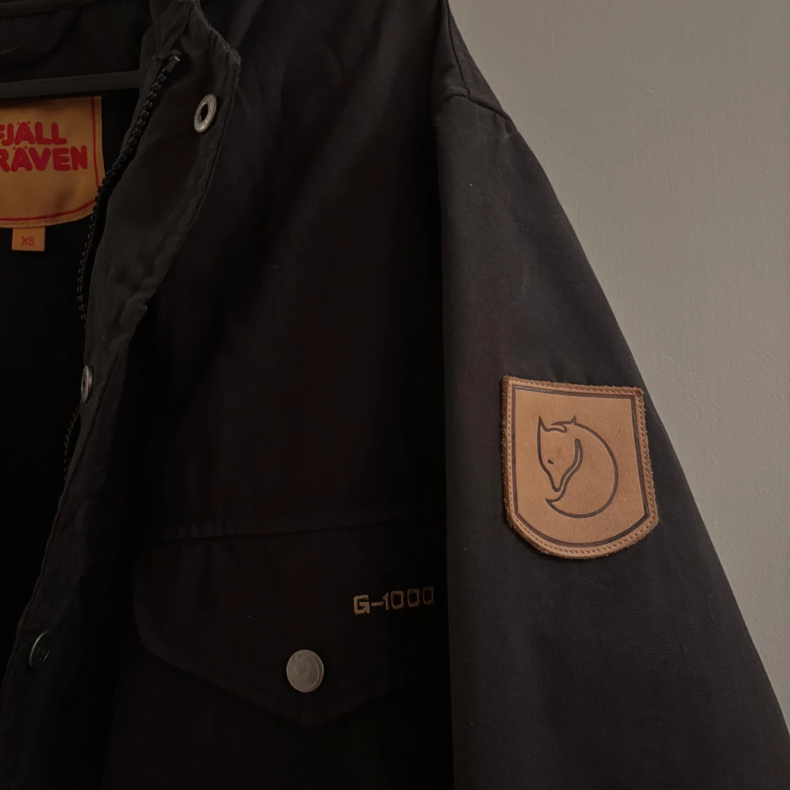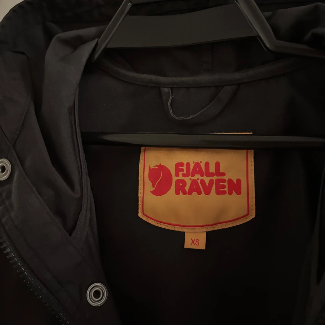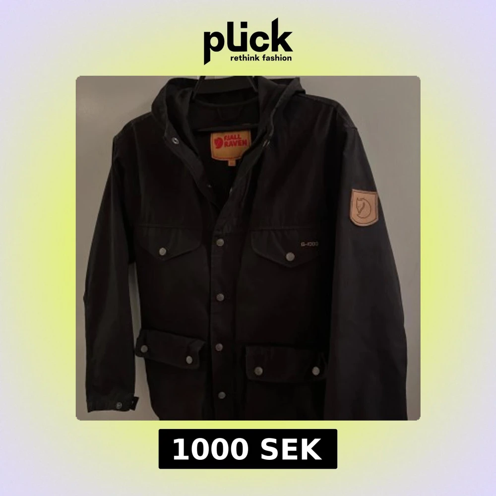 Passar S/M. Svart parkajacka från Fjällräven i G-1000 material, med huva och flera fickor med tryckknappar. Klassisk Fjällräven-logga på ärmen och snygga detaljer. Perfekt för dig som gillar outdoor och vill ha en stilren jacka med funktion.