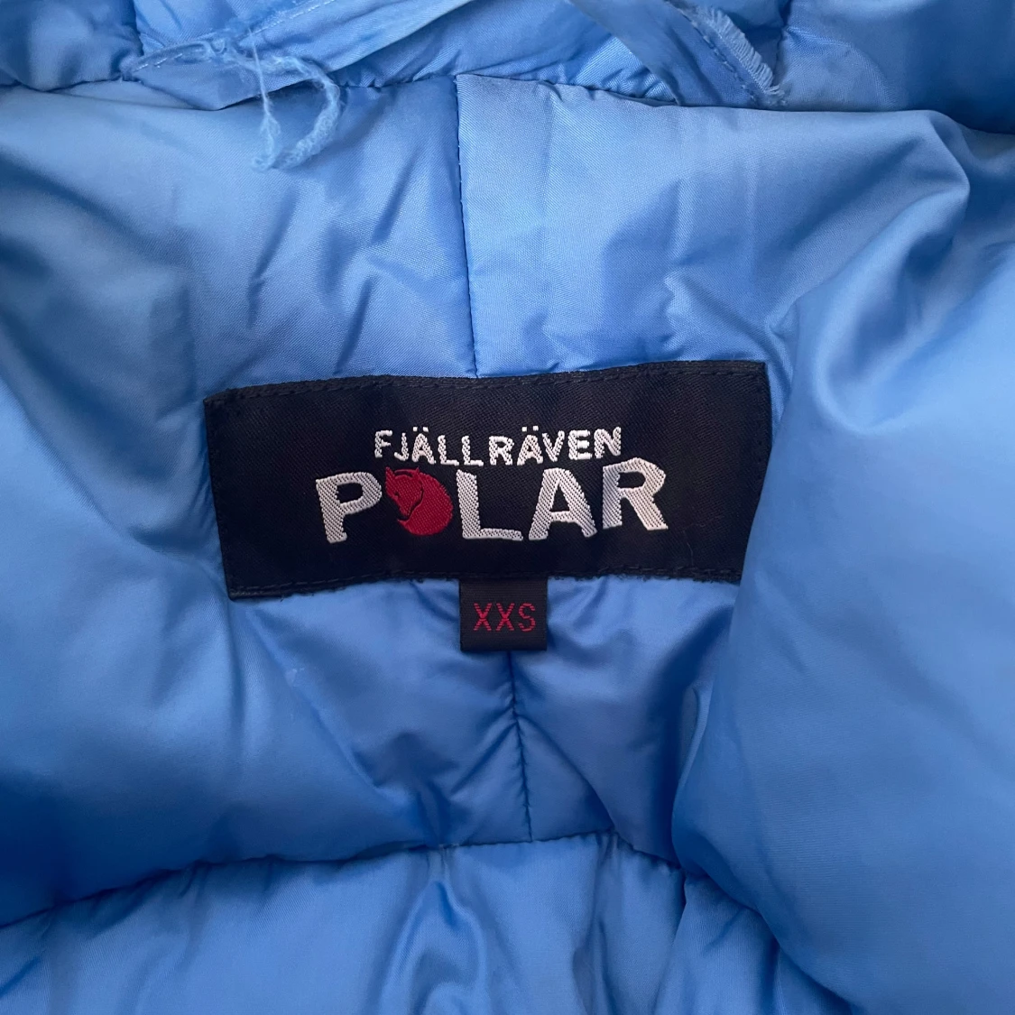 Säljer en blå Fjällräven Polar dunjacka i storlek XXS. Säljer just för att den inte kommer till användning!! Pris kan diskuteras