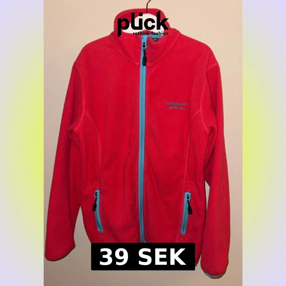 Röd fleecejacka från Swedemount med blå dragkedjor och detaljer. Jackan har hög krage, två fickor med dragkedja och är tillverkad i 100% polyester. Perfekt för kyliga dagar och enkel att slänga på sig över en hoodie.