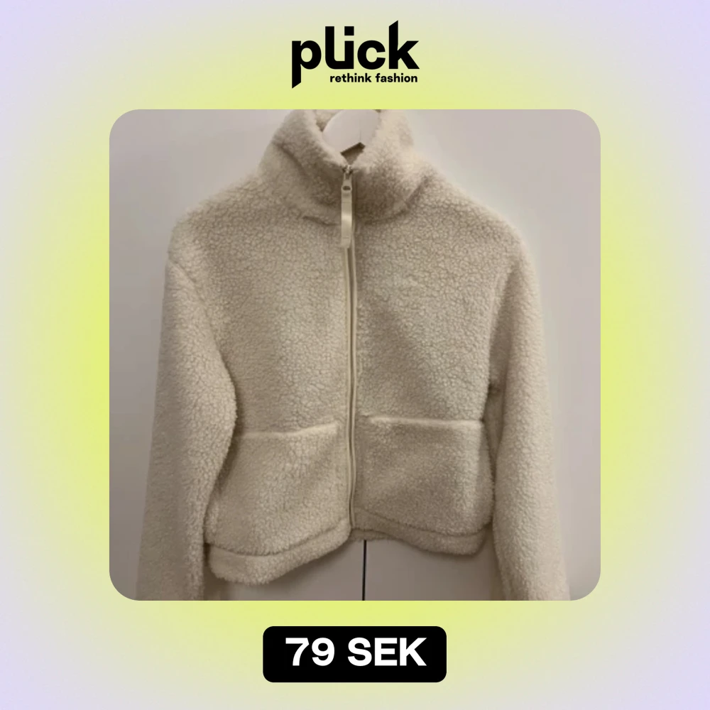 Vit croppad fleece jacka från H&M, använd fåtal gånger.