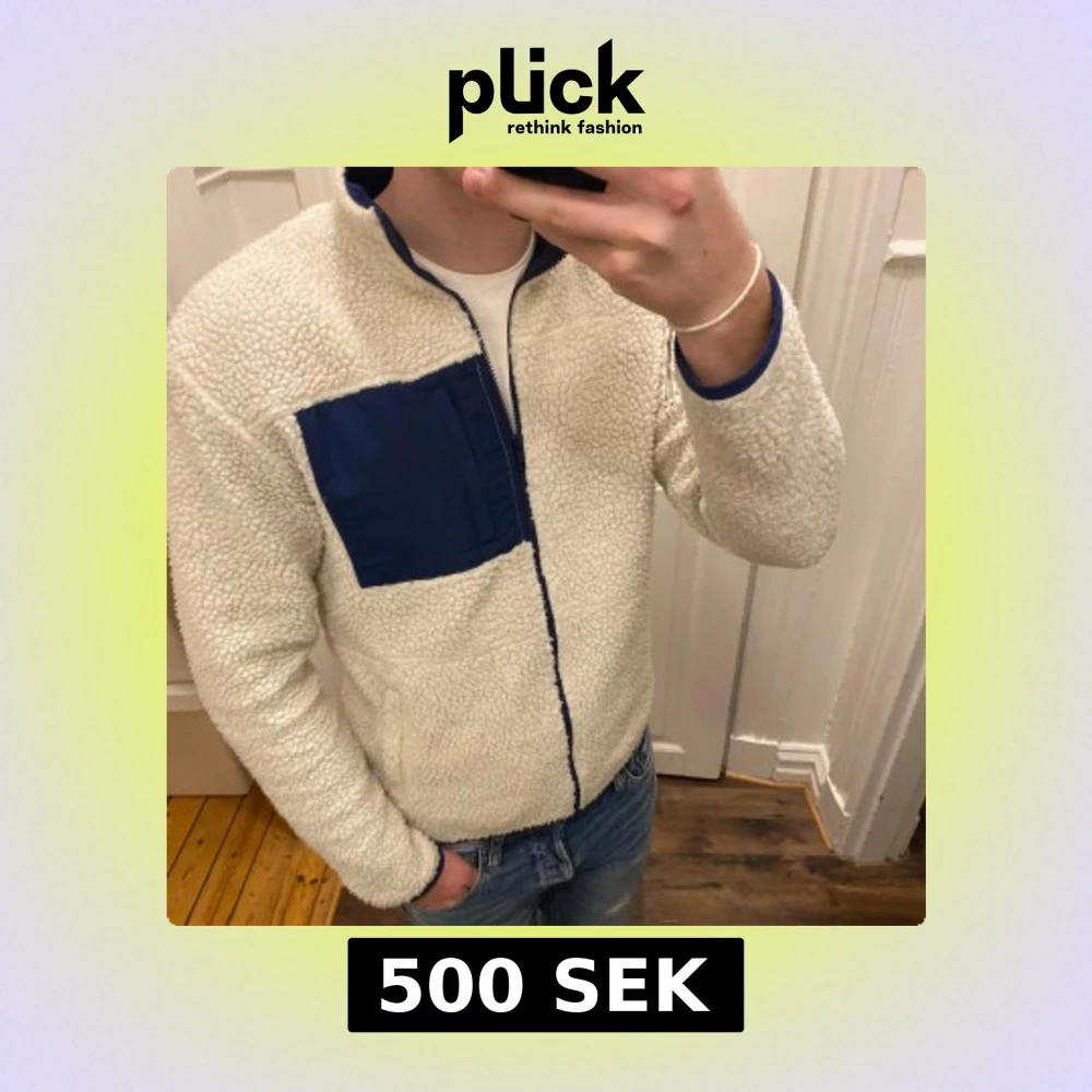 Fleece jacka med en blå bröstficka och dragkedja. Jackan har en skön och varm känsla, perfekt för kyligare dagar. Den har långa ärmar och en kontrasterande blå detalj vid dragkedjan och fickan. Det finns lite små tyg bitar som går att ta bort se på sista bilden, Syns inte vid användning🙌modellen är ca 182,tveka inte att kontakta vid eventuella frågor 😀