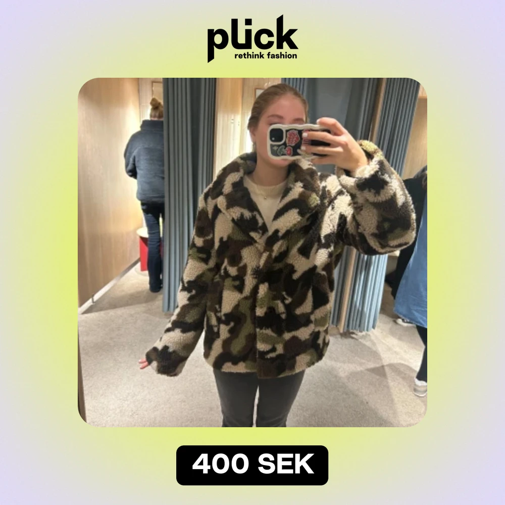 Snygg Teddy jacka i militärmönster. Den är storlek s men lite oversised, mysig till hösten och ganska varm