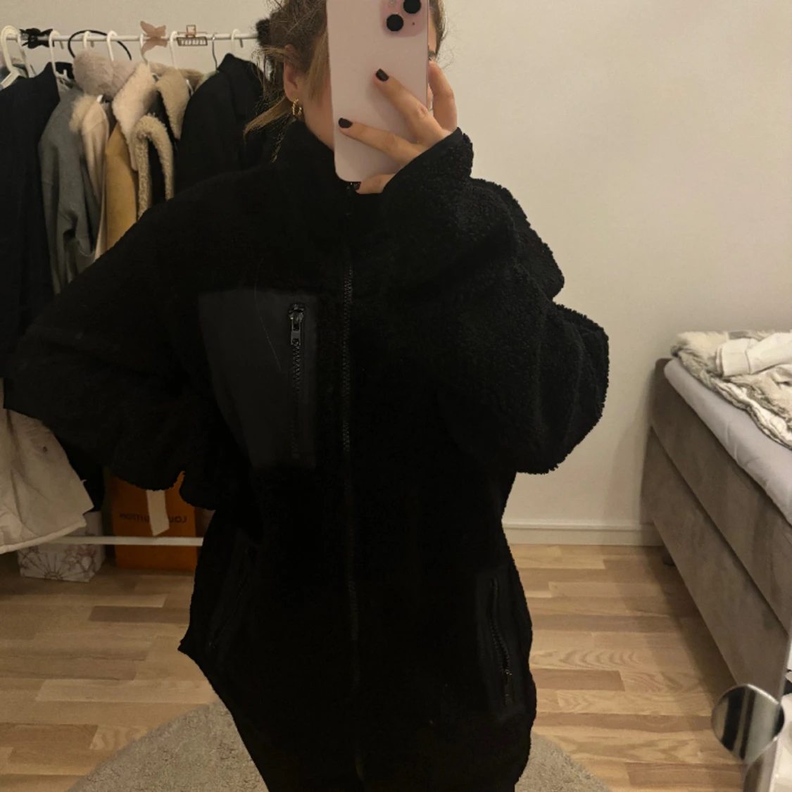 Storlek M då jag ville ha den lite större. Superfin och varm!