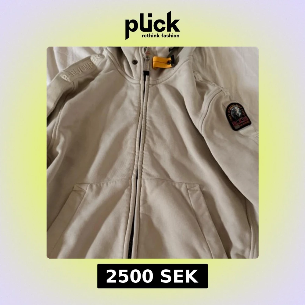 Snygg beige fleecejacka från Parajumpers med huva, dragkedja och ikonisk patch på ärmen. Jackan har en gul detalj vid halsen och praktiska fickor framtill. Säljes då den blivit alldeles för stor för mig. Köpt på season