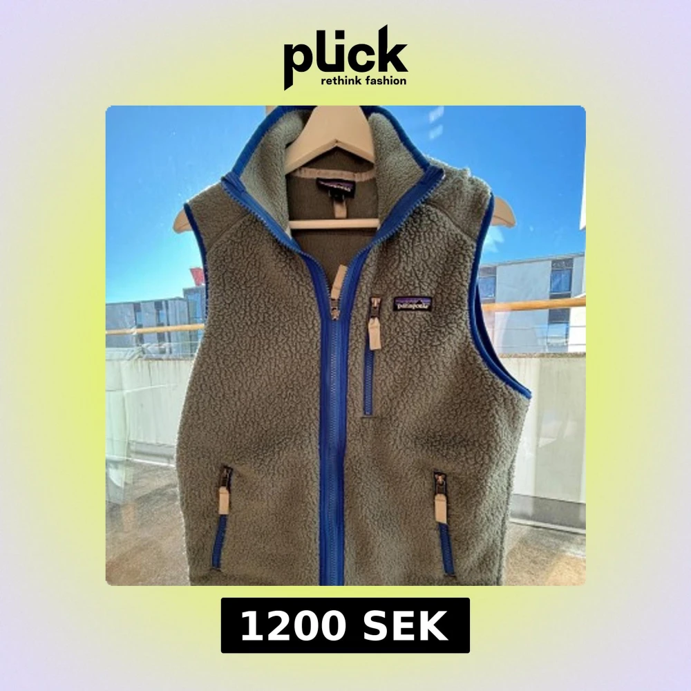 Säljer en fleeceväst från Patagonia i storlek S. Västen har blå detaljer och dragkedjor framtill samt på fickorna. Den har en hög krage och ett mjukt, fluffigt material som är perfekt för lager-på-lager. Patagonia-loggan sitter på bröstet.
