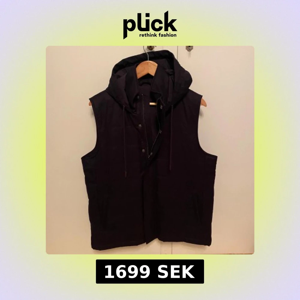Säljer nu denna sjukt unika västen med luva! Köpt på buktiken Gutteridge i Milano, 10/10 skick. Storleken är L, modell på bild är 190 lång. Hör av er vid funderingar!