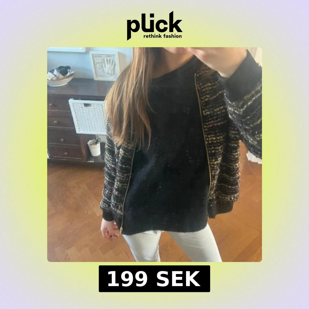Säljer en snygg randig jacka från H&M med dragkedja framtill. Jackan har en mix av färger som svart, rosa och gul, vilket ger den ett unikt utseende. Köpt på vinted. Aldrig andvänt. Säljer för den är för liten i armarna.