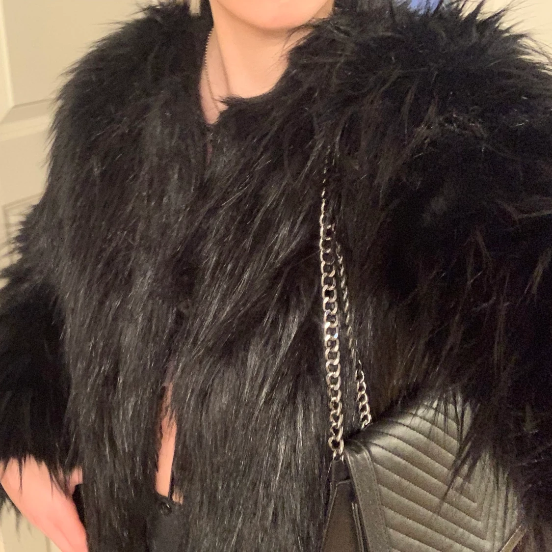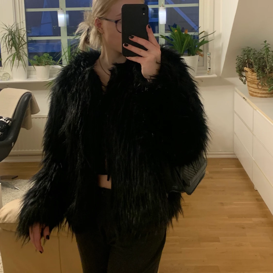 Supersnygg svart pälsjacka från BikBok. Ej äkta päls. Storlek M. Pris 200kr. Frakt tillkommer.