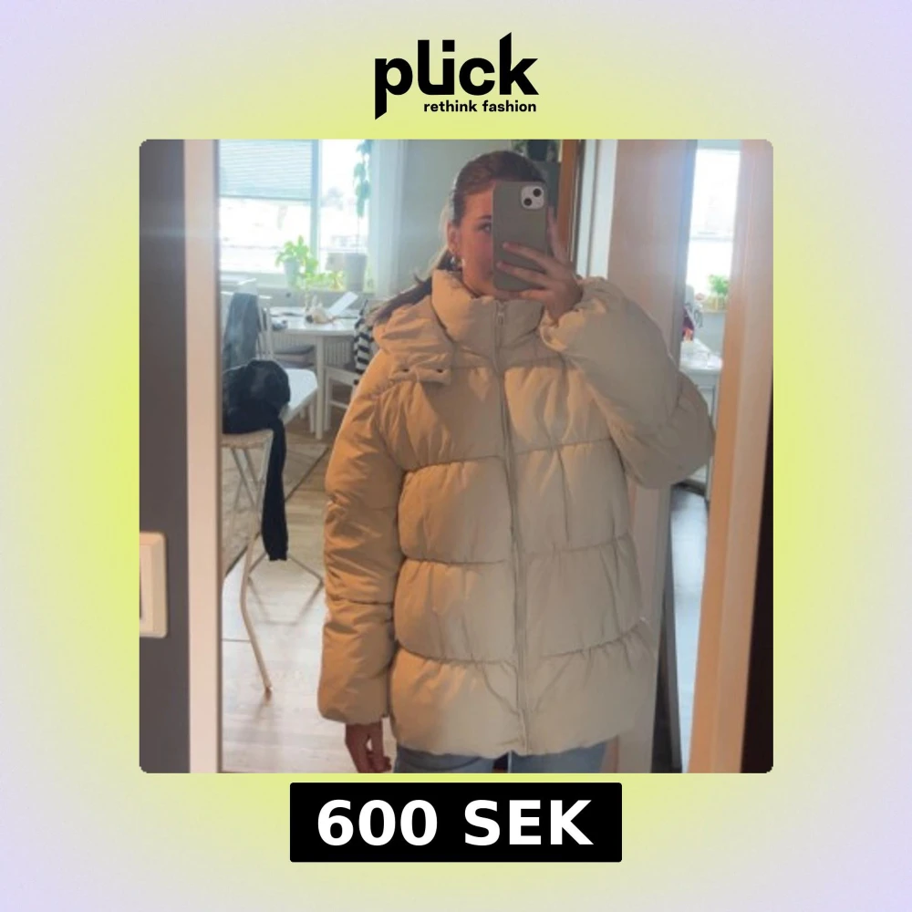 Säljer en beige pufferjacka från Vero Moda med huva och dragkedja framtill. Jackan har en oversized passform och är quiltad med breda kanaler. Perfekt för kalla dagar och har långa ärmar samt snygga detaljer vid huvan. Storlek är xs men kan definitivt passa som en M och kanske möjligt en L . Har blivit använd 1-3 gånger men itne blivit använd för att storleken varit för stor🥰😊