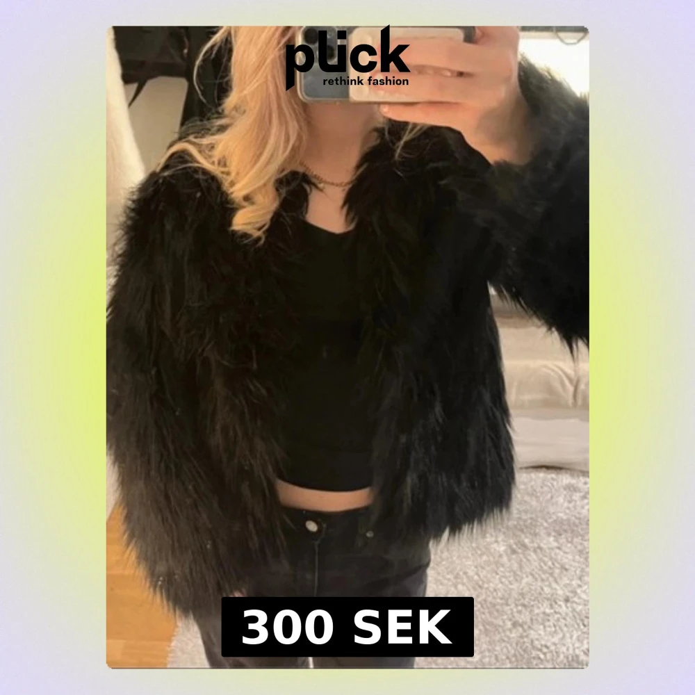 Säljer en svart fluffig pälsjacka med lång ärm och loose passform. Perfekt för dig som vill hålla dig varm under höst och vinter.