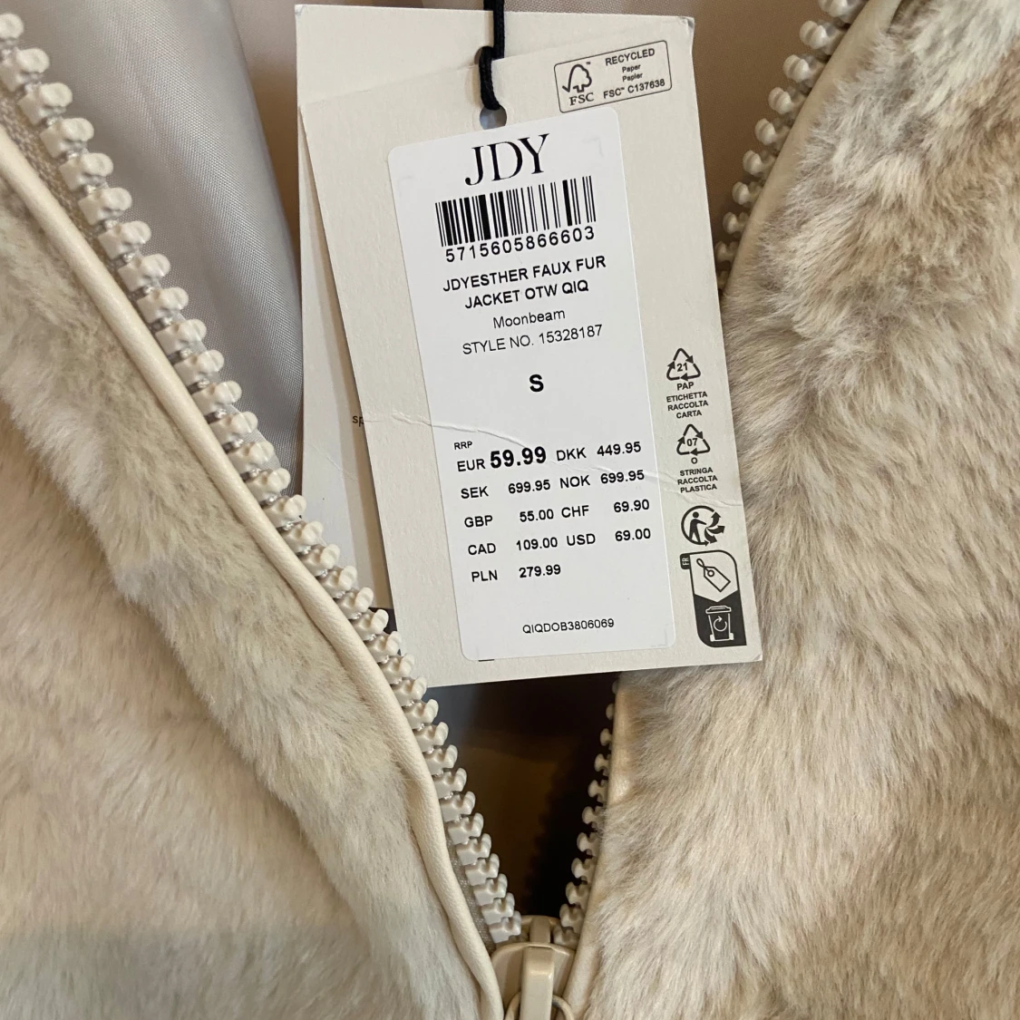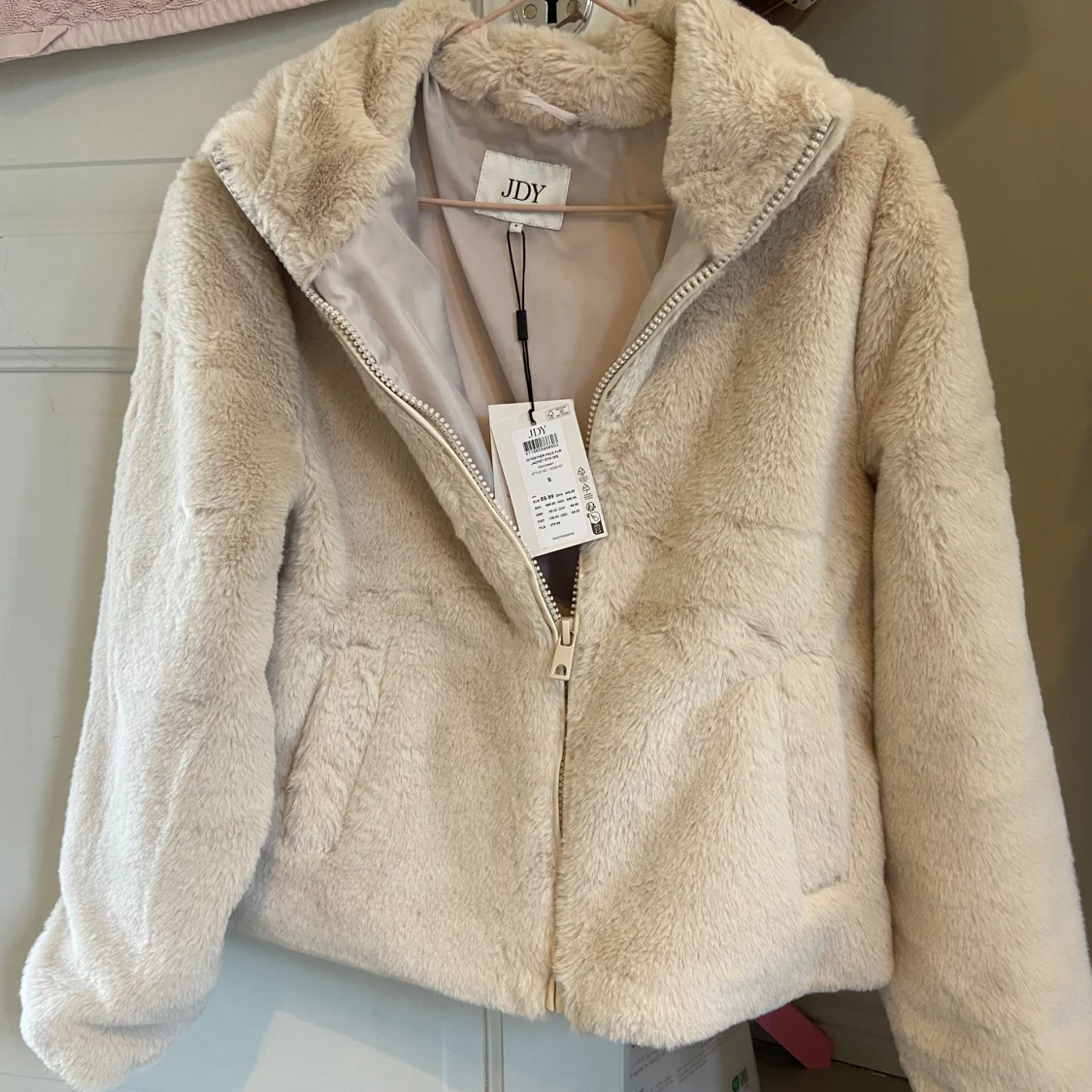 Mysig beige fejkpäls jacka från JDY med dragkedja framtill. Jackan har en fluffig textur och två fickor på framsidan. Den är aldrig använd förutom på bilden och har prislappen kvar💕 hör av dig vid frågor eller intresse 💕
