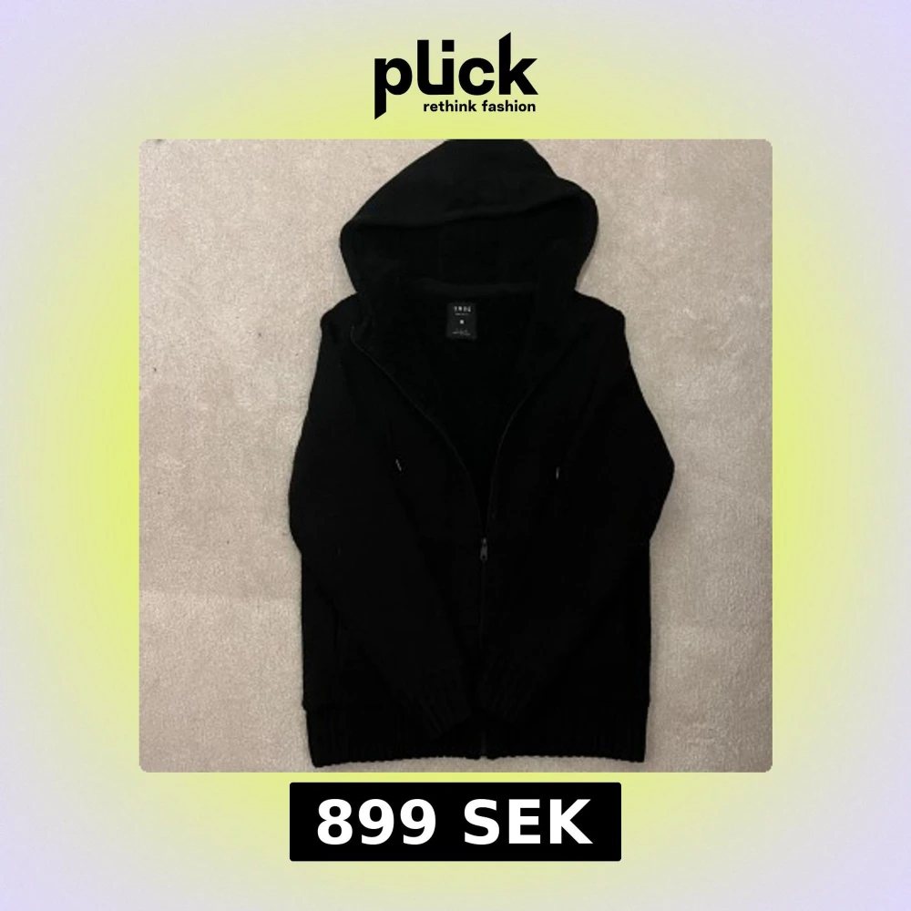 Säljer en svart fodrad cardigan jacka. Den har en dragkedja framtill och en mysig huva. Insidan är quiltad för extra värme och komfort. Perfekt för kyliga dagar! Vid minsta fråga eller fundering hör av er🤝