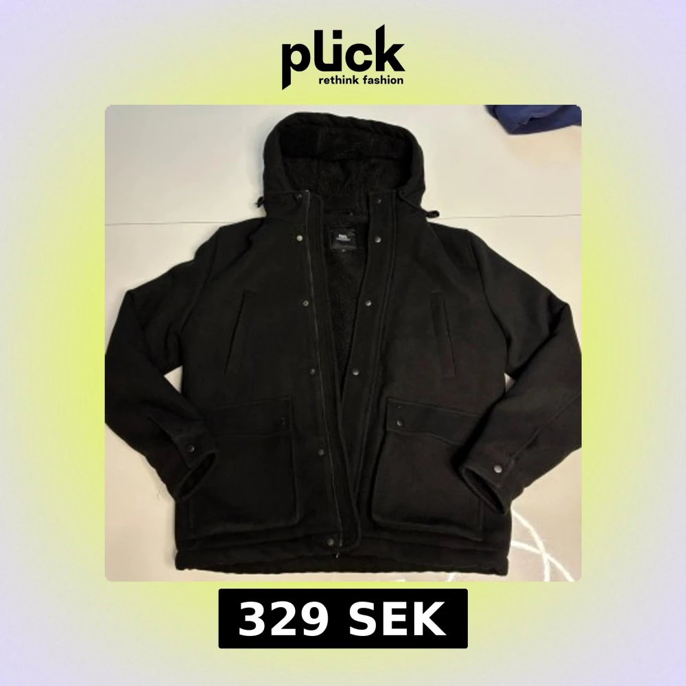 Säljer en svart fodrad jacka med huva och dragkedja. Jackan har långa ärmar och är fodrad med mjuk fleece för extra värme. Perfekt för kyliga dagar!