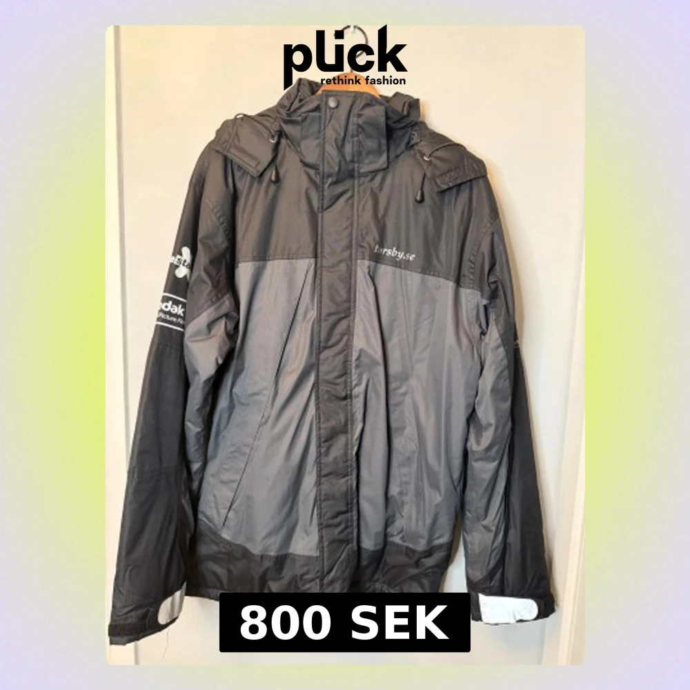 Snygg mörkgrå och svart fodrad vinterjacka från filmen Rallybrudar och flera sponsorer som Kodak och Helmia. Jackan är aldrig använd och har huva med snörning, dragkedja och tryckknappar framtill samt coola loggor på ryggen och ärmarna. Perfekt för dig som gillar motorsport och film.