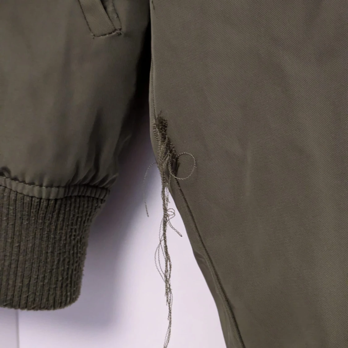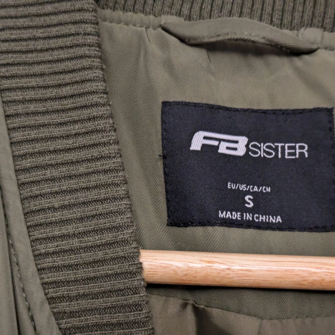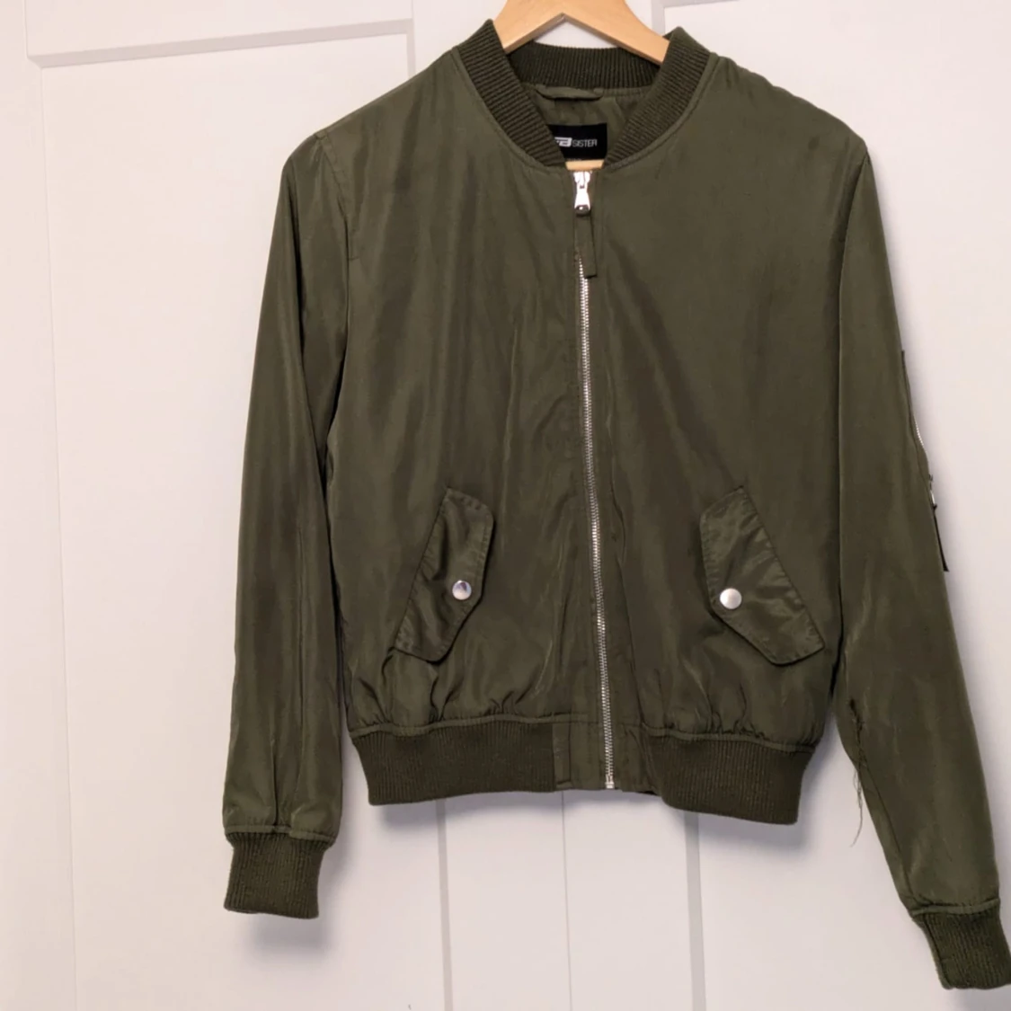 Snygg olivgrön bomberjacka från FB Sister med dragkedja framtill och ribbade muddar. Jackan har två fickor med knappar och en klassisk bomberstil. Perfekt för en cool och avslappnad look.